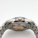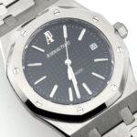 The black?Grande Tapisserie?dial adds depth and texture, offering a bold contrast to the steel case. White gold applied hour markers and Royal Oak hands with luminescent coating ensure excellent readability, while the date window at 3 o??clock integrates seamlessly into the symmetrical layout.