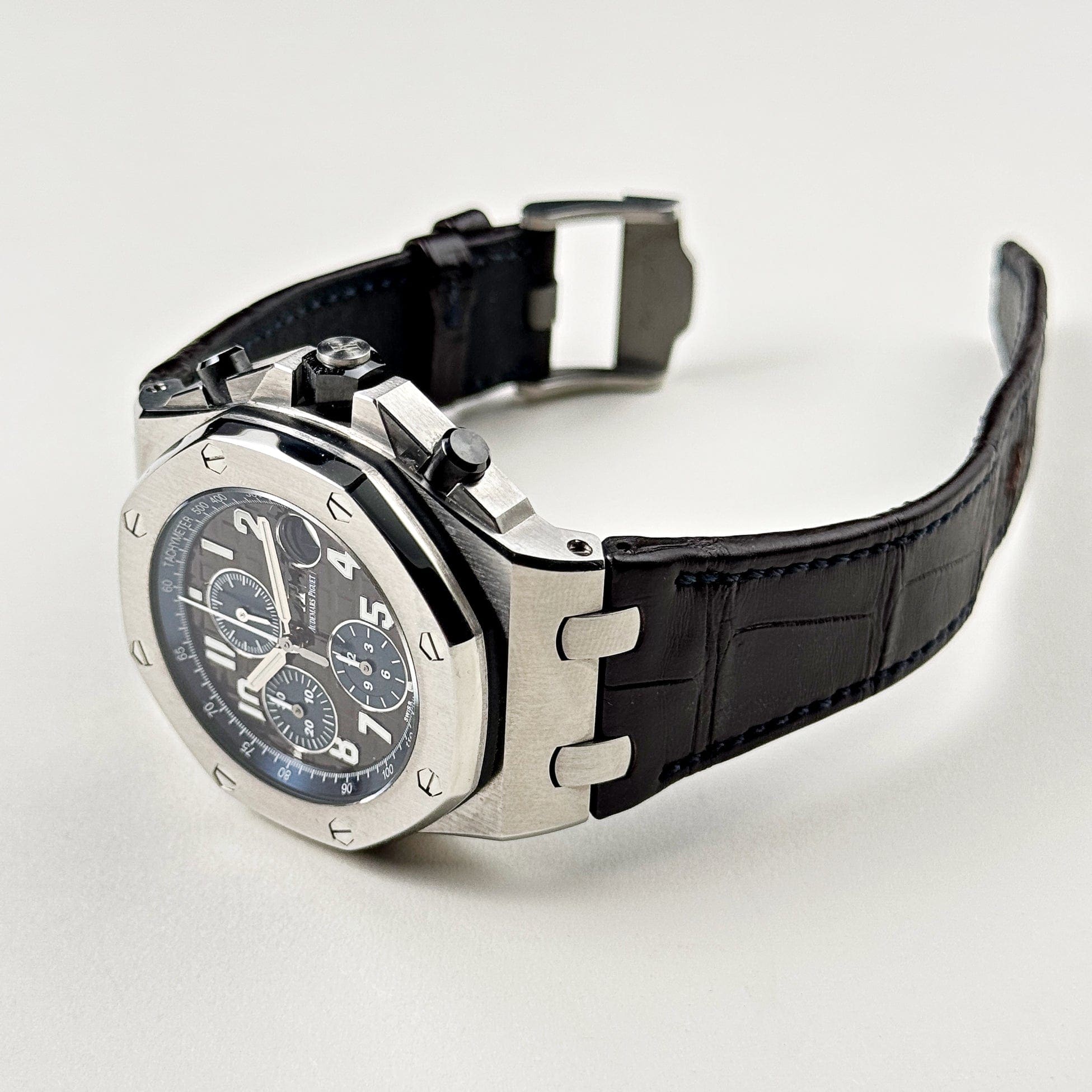 The Audemars Piguet 26470ST.OO.A099CR.01 is a striking selfwinding that blends robust design with refined craftsmanship. Crafted in stainless steel, the 42mm case features the iconic Royal Oak Offshore octagonal bezel secured with exposed screws, emphasizing its sporty yet sophisticated appeal.