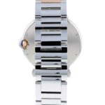 The exquisite Ballon Bleu de Cartier watch boasts a 42 mm size and a powerful mechanical movem ent with automatic winding, thanks to the calibre 1847 MC. Its stunning steel case and rose gold 750/1000 bezel, along with the flut ed rose gold 750/1000 crown adorned with a synthetic cabochon-shaped spinel, make for a luxurious and eye-catching design. The silve red guilloch?? dial features blued-steel sword-shaped hands, while the sapphire crystal and calendar aperture at 3 o’clock add functi onality. The interchangeable two-tone bracelet adds versatility. With a thickness of 13 mm and water-resistance of up to 3 bar (appr ox. 30 metres), this watch is the epitome of both style and function.