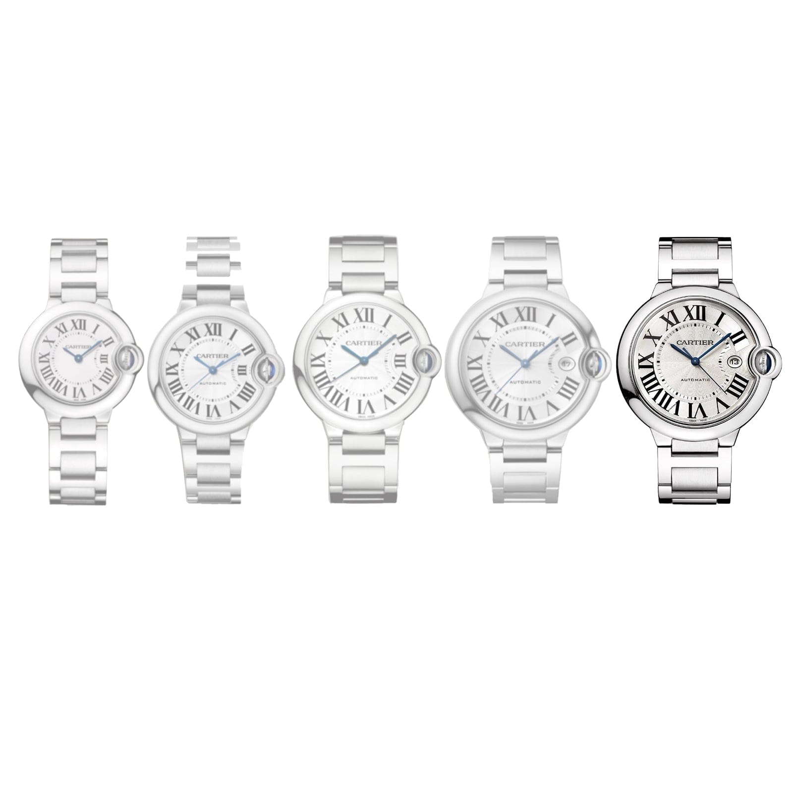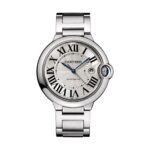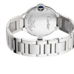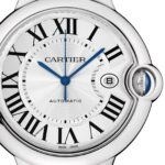 Ballon Bleu de Cartier – in pursuit of harmony Striking the perfect balance between line and volume A 42mm steel case provide an elegant silhouette and is secured with an interchangeable steel bracelet Blued-steel sword-shaped hands move gracefully across the silvered guilloche dial The self-winding mechanical movement 1847 MC Calibre delivers flawless precision IN SEARCH OF HARMONY Designed to subvert watchmaking rules, the Ballon Bleu de Cartier was launched in 2007 and rapidly became a resounding success and a Cartier icon. Created from a new vision of roundness, its double convex silhouette strikes the perfect balance between line and volume. Each model in the collection features a blue sapphire cabochon set within the seamlessly integrated winding crown, creating the appearance of a floating blue balloon, which gives the collection its name. The crown cap sits under a metal hoop at three o’clock, protecting the blue bubble. A STRONG SIGNATURE AESTHETIC Best appreciated when worn, this iconic timepiece sits in a 42mm steel case with a unique convex pebble shape inspired by a new vision of roundness. Blued-steel sword-shaped hands move gracefully across the silvered guilloche dial, with Roman numerals marking the passing of time. Next to the statement blue crown, a subtle date display sits at 3 o’clock, enhancing functionality without compromising the model’s carefully curated aesthetic. The self- winding mechanical movement 1847 MC Calibre ensures power and precision, while an interchangeable steel bracelet delivers comfort on the wrist.