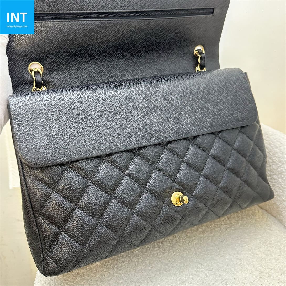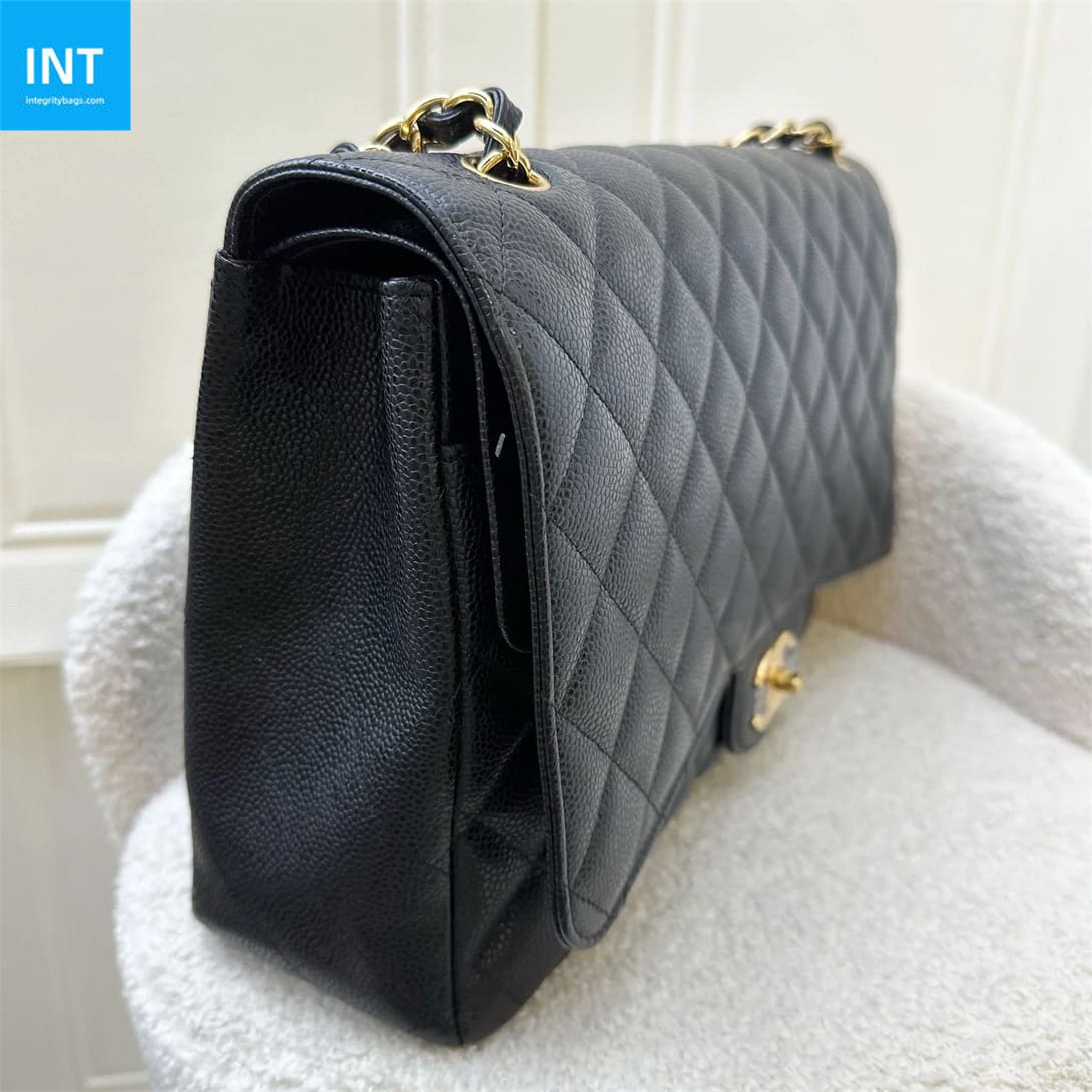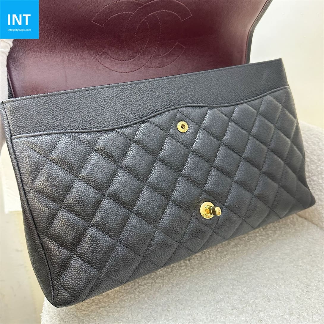 CHANEL Classic Maxi Handbag GRAINED CALFSKIN & GOLD METAL