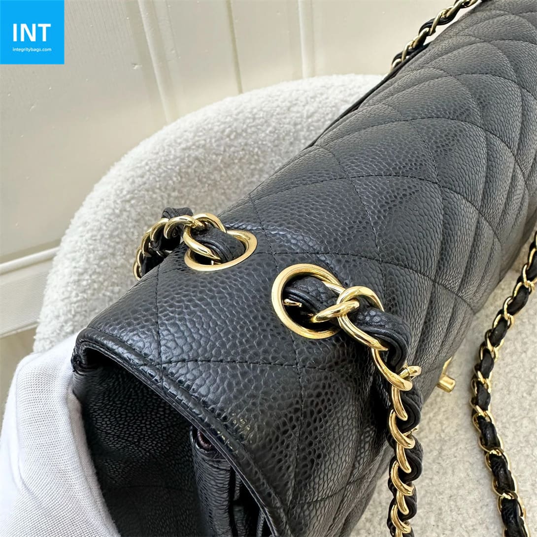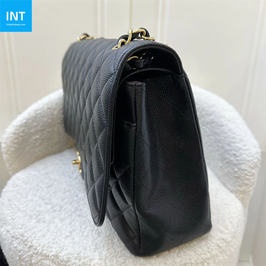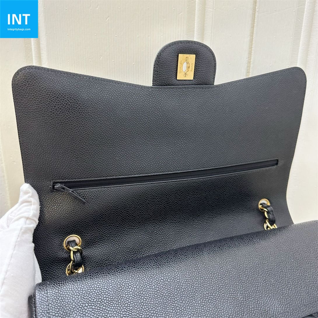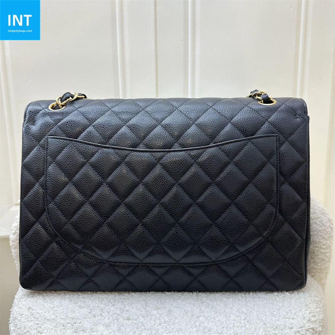 CHANEL Classic Maxi Handbag GRAINED CALFSKIN & GOLD METAL