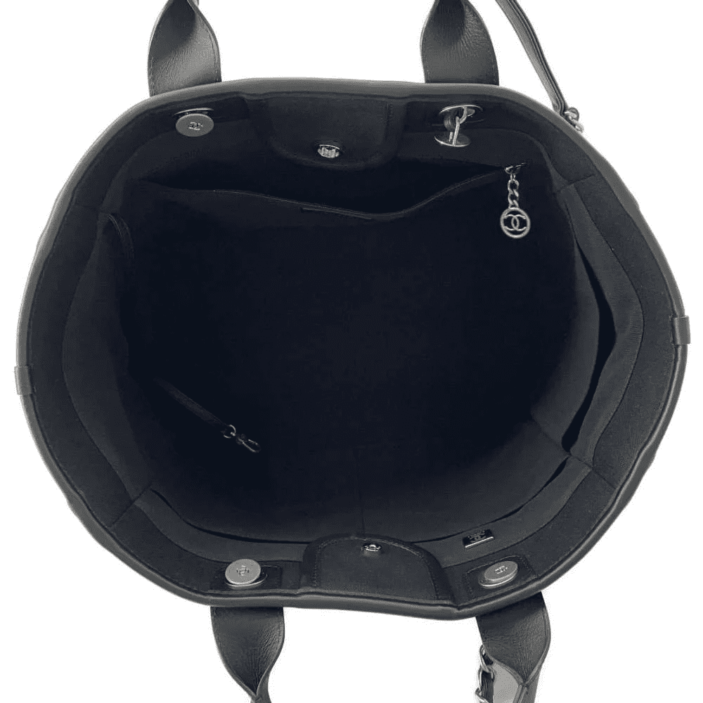 CHANEL Deauville 2wayTote Bag Black A66941 Cotton Leather