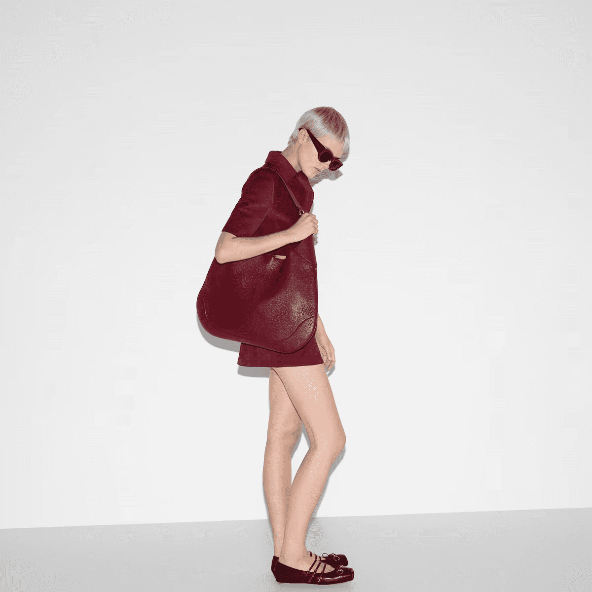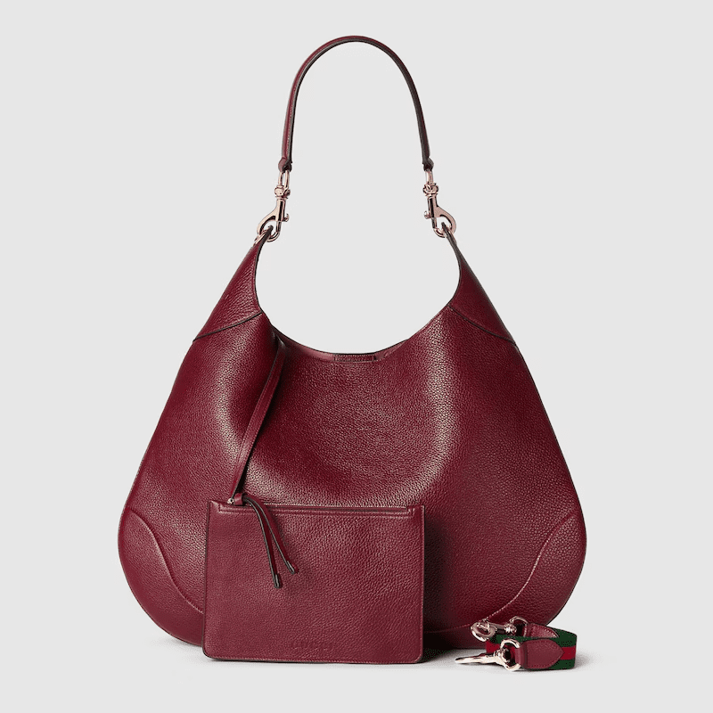 Introducing the Gucci B, which draws inspiration from a 1950s archival style. This medium shoulder bag, embodying the essence of its mid-20th century design origins, is crafted from soft grainy leather which drapes on the body.