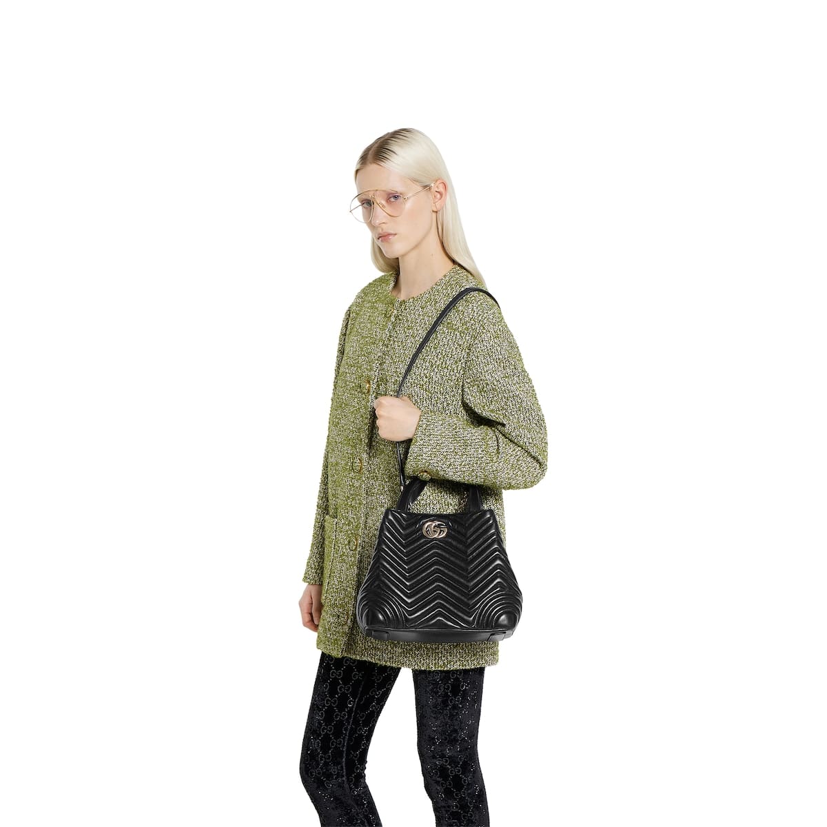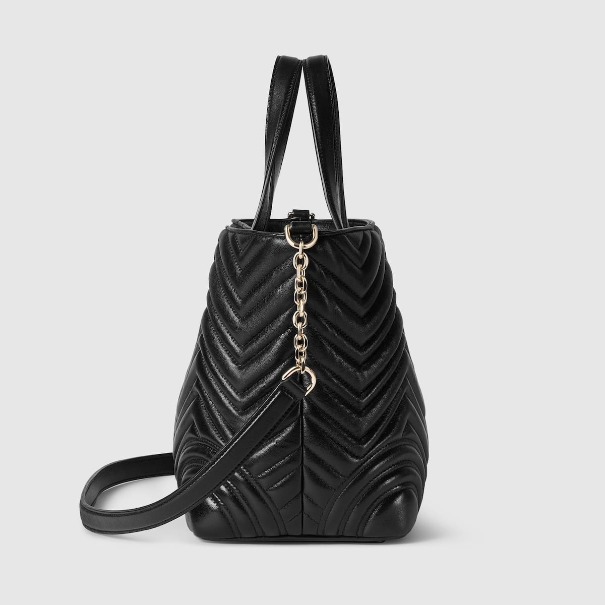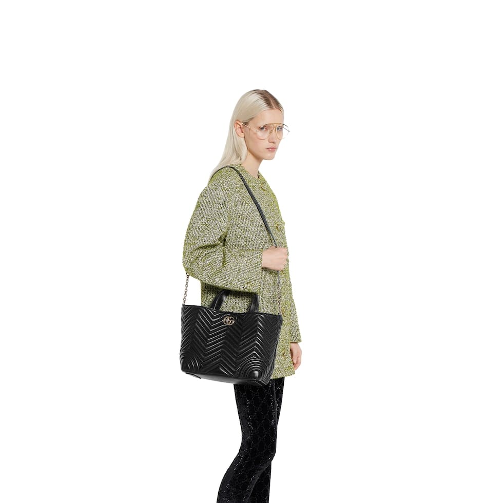 Gucci Betty adds a touch of spontaneity to refined design, which can change from a structured tote to soft-shaped bucket. The style is completed with top handles and a chain shoulder strap, offering versatile styling options.