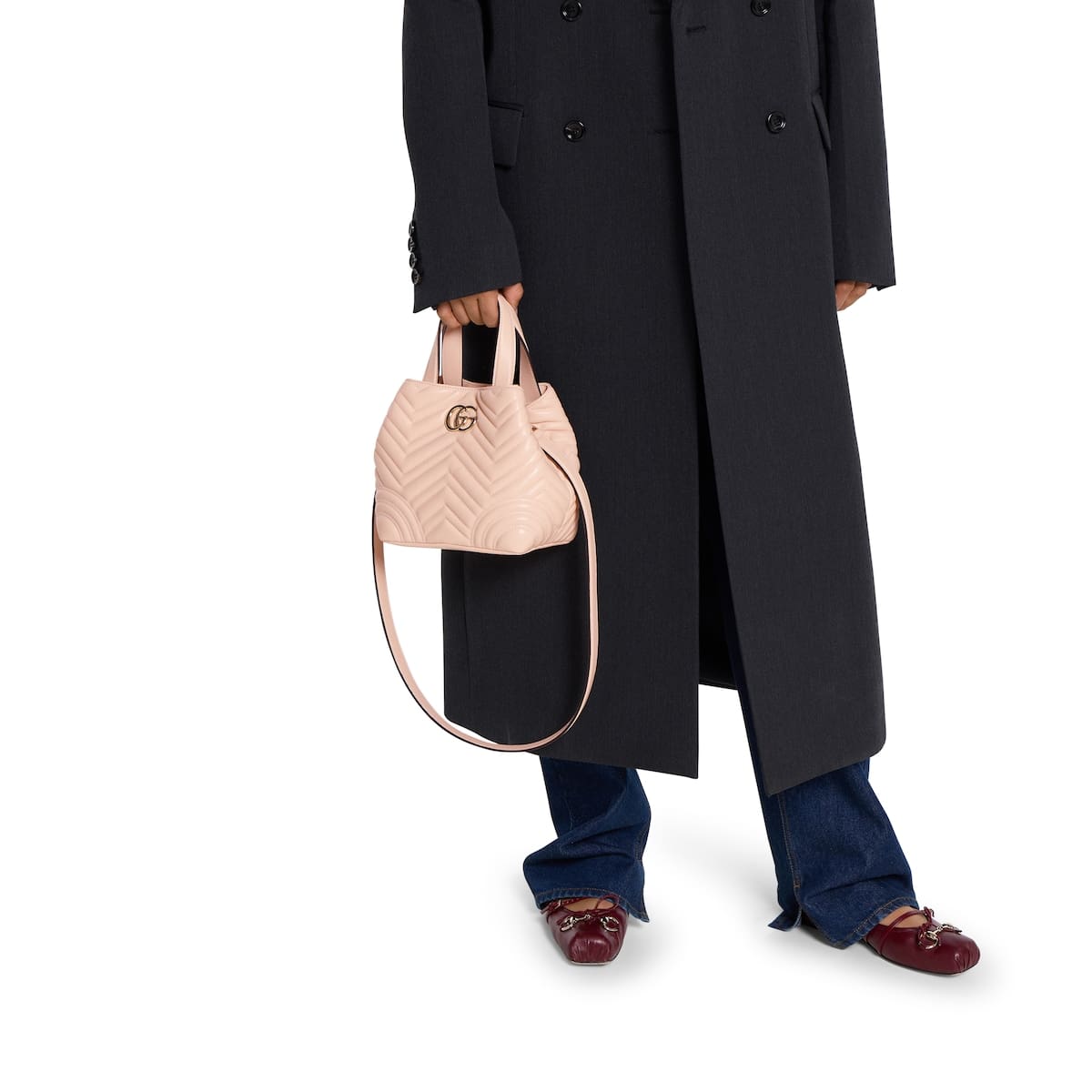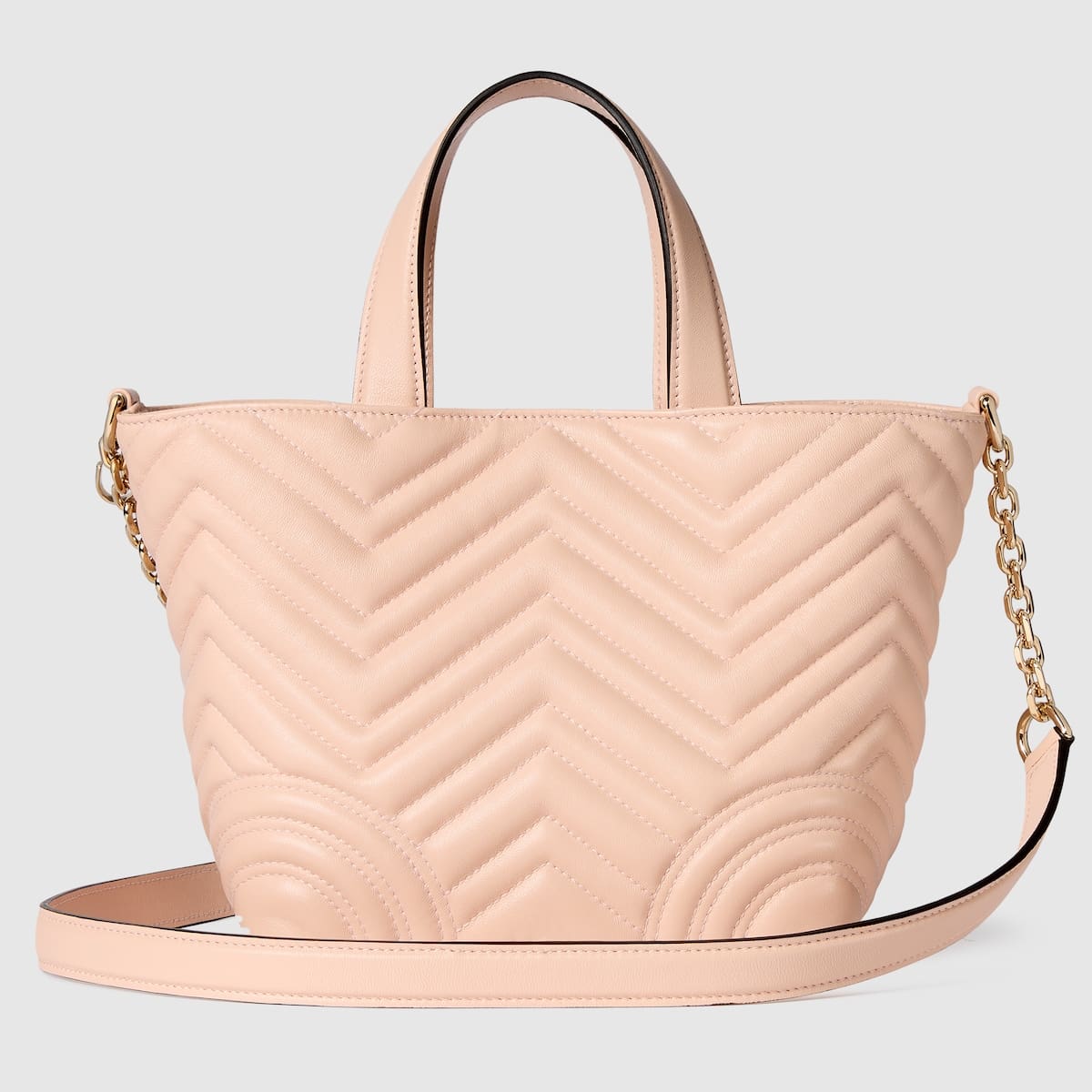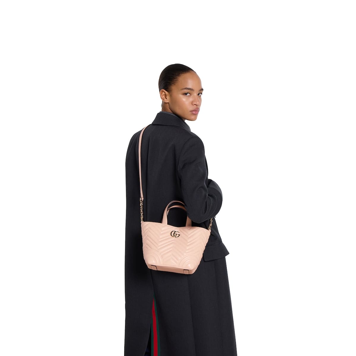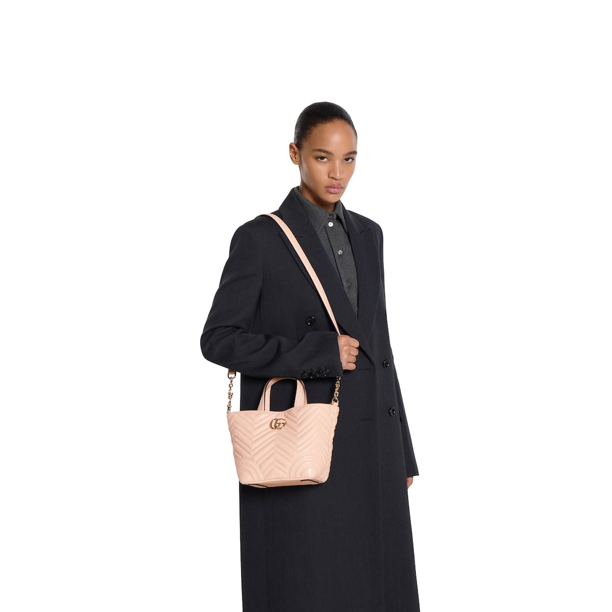 Gucci Betty adds a touch of spontaneity to refined design, which can change from a structured tote to soft-shaped bucket. The style is completed with top handles and a chain shoulder strap, offering versatile styling options.