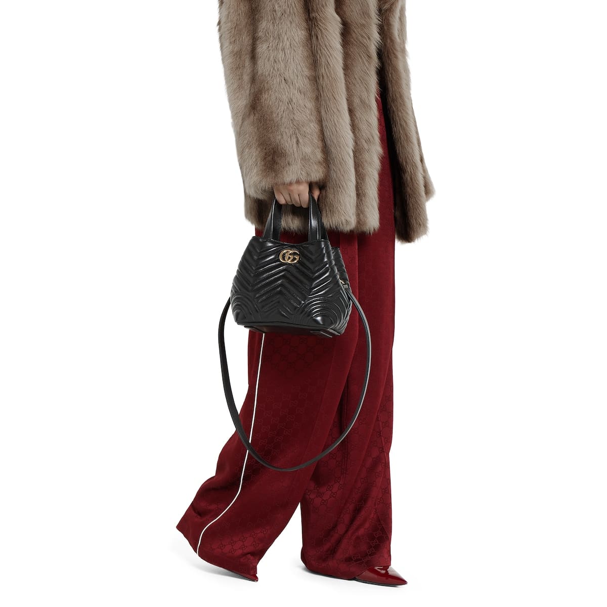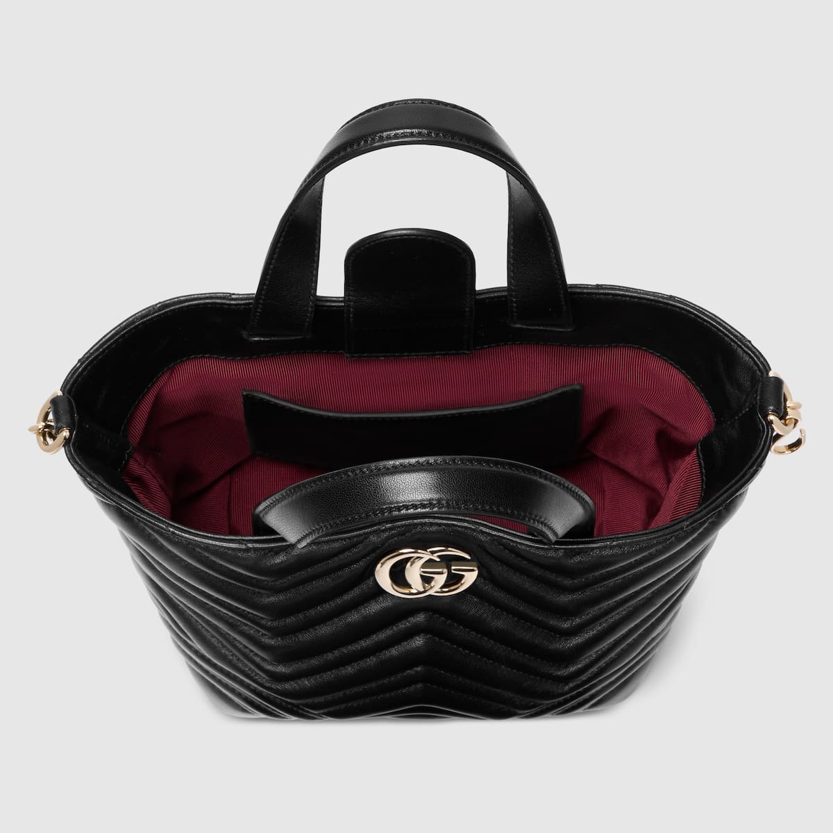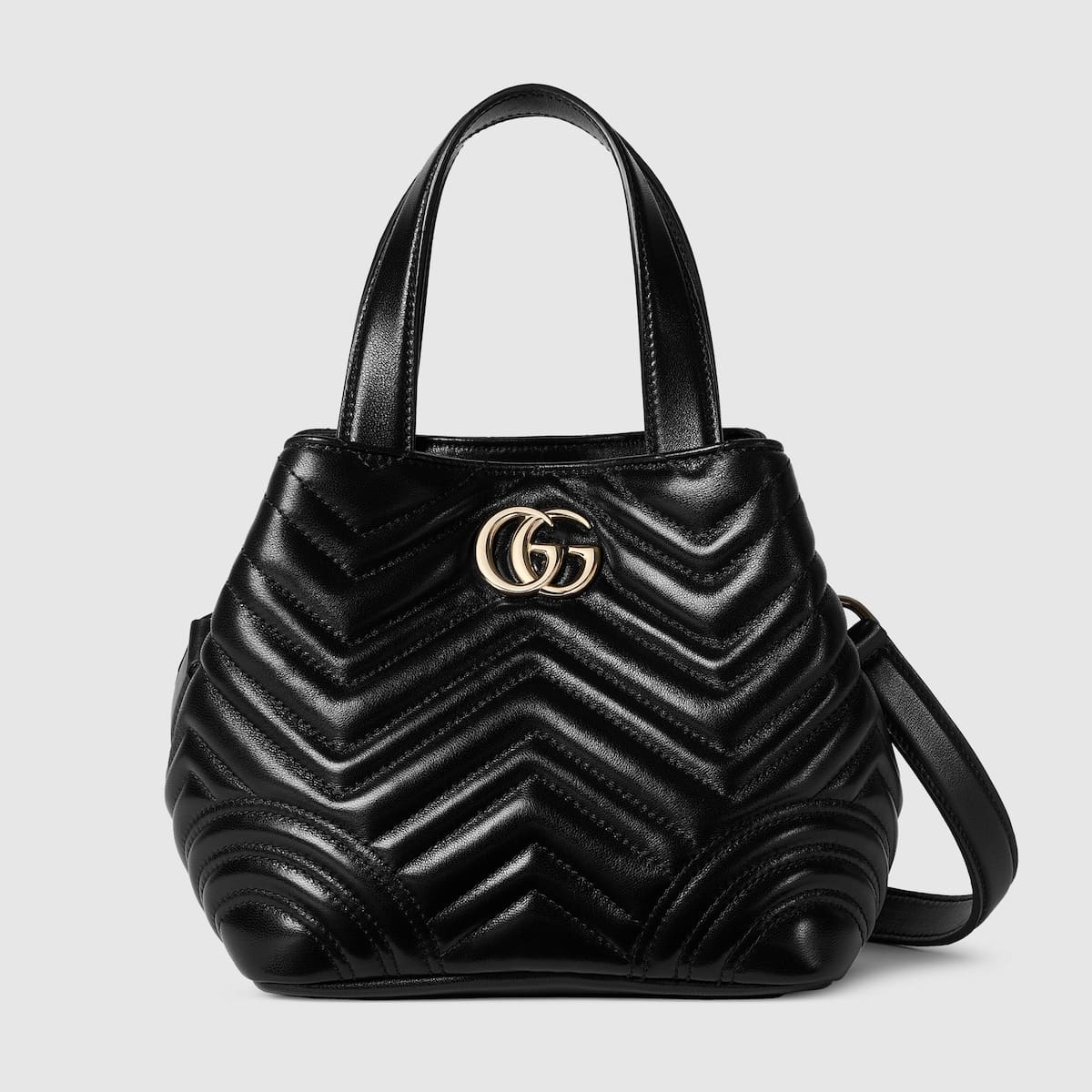 Gucci Betty adds a touch of spontaneity to refined design, which can change from a structured tote to soft-shaped bucket. The style is completed with top handles and a chain shoulder strap, offering versatile styling options.