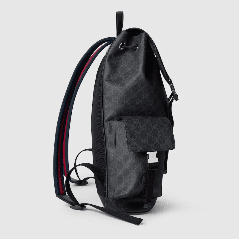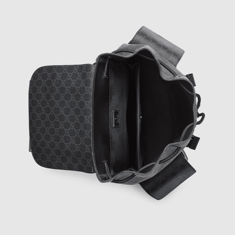 The signature GG Supreme canvas remains an evergreen of the House thanks to its soft and malleable qualities. Crafted from a coated microfiber fabric, here it appears in an all black variation to define this backpack. A tonal leather trim completes the style, while a pop of colour appears in the form of the archival Web stripe.