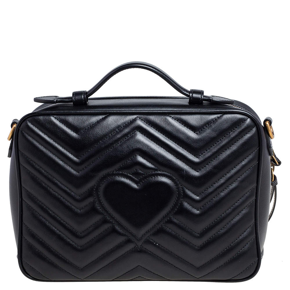 Gucci Black Matelasse Leather Small GG Marmont Bag