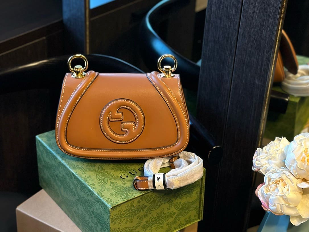 The new Gucci Blondie bag, whose distinctive logo first appeared in the House’s collections in the early 1970s, weaves together past and present in a fusion of nostalgia and modernity. This mini shoulder bag with an adjustable shoulder strap is crafted from brown smooth leather.