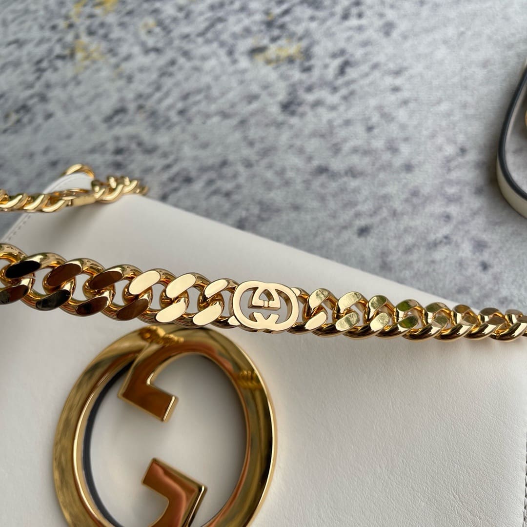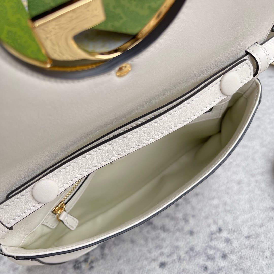 Coming from the House’s archives, a round shaped version of the Interlocking G logo is reintroduced for Gucci Love Parade. Crafted from white leather, this shoulder bag is completed by a delicate chain strap, infusing this accessory with a refined feel.