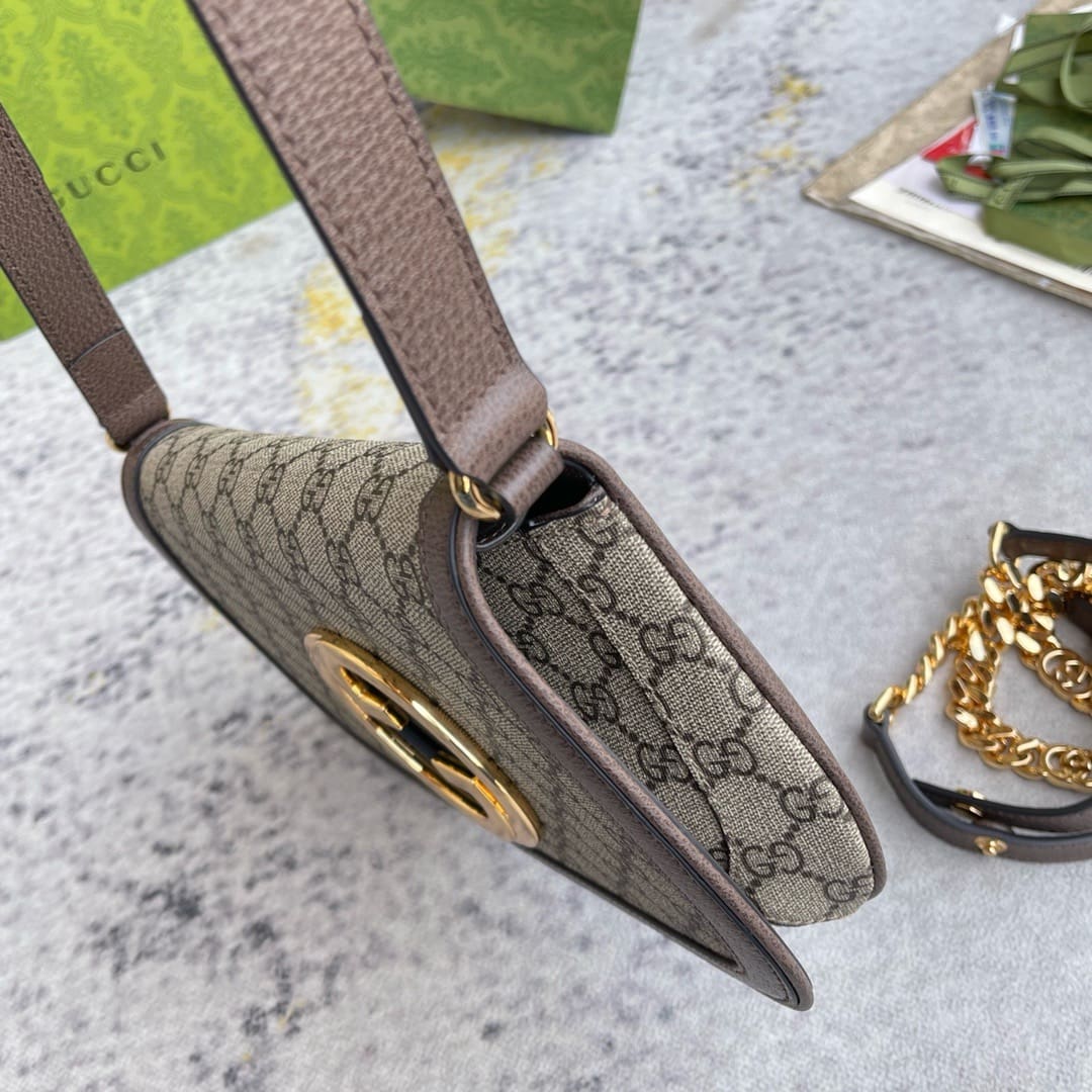 Vintage elements are paired with archival details as an ode to the glamour that permeated the Gucci Love Parade fashion show. This shoulder bag pairs a delicate chain strap with GG Supreme canvas to infuse the accessory with a timeless feel. Reintroduced in honour of the collection, the rounded silhouette is completed by a historical, rounded iteration of Guccio Gucci’s monogram.