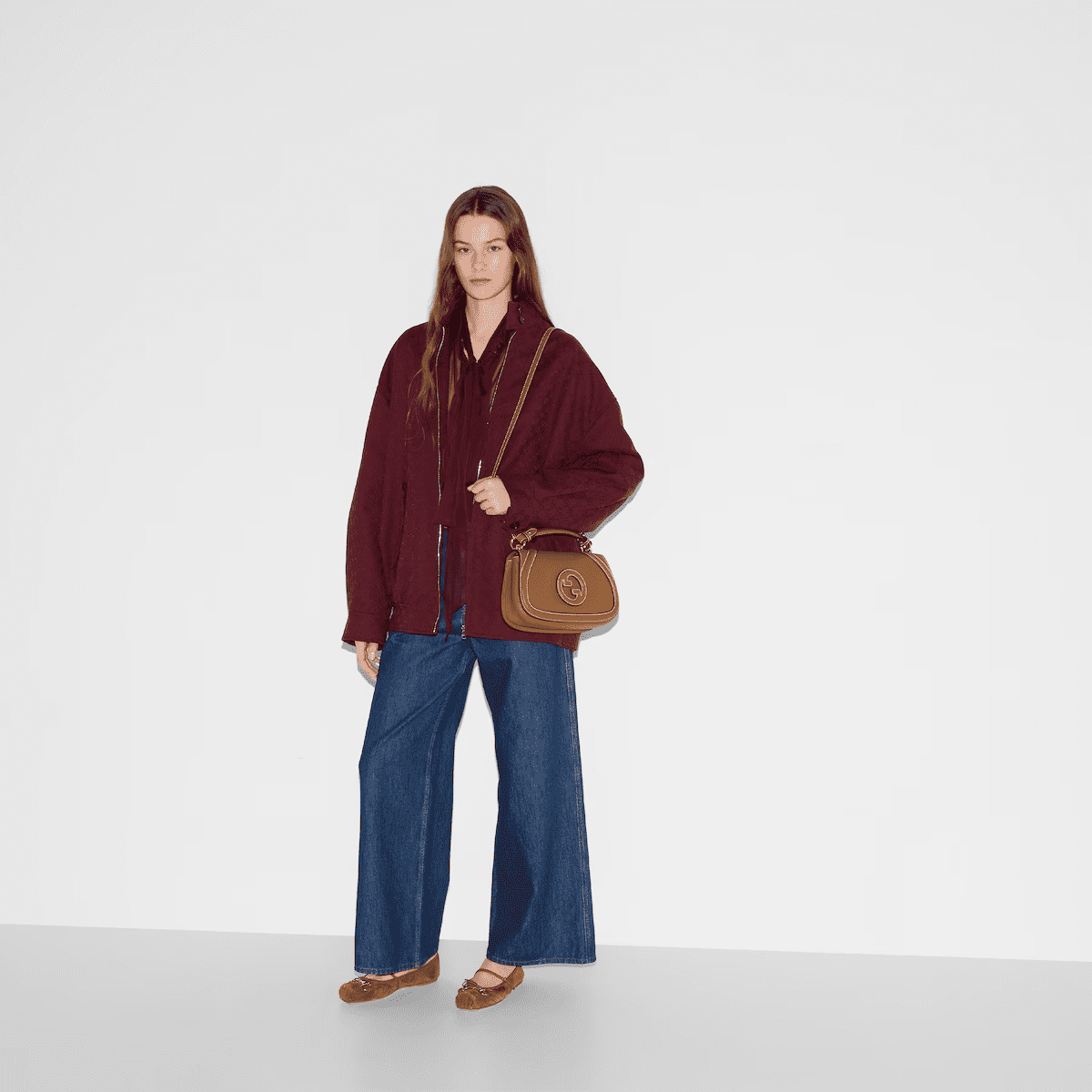 The new Gucci Blondie bag, whose distinctive logo first appeared in the House’s collections in the early 1970s, weaves together past and present in a fusion of nostalgia and modernity. Presented in exceptionally smooth brown leather, this small bag is complete with a top handle and adjustable shoulder strap.