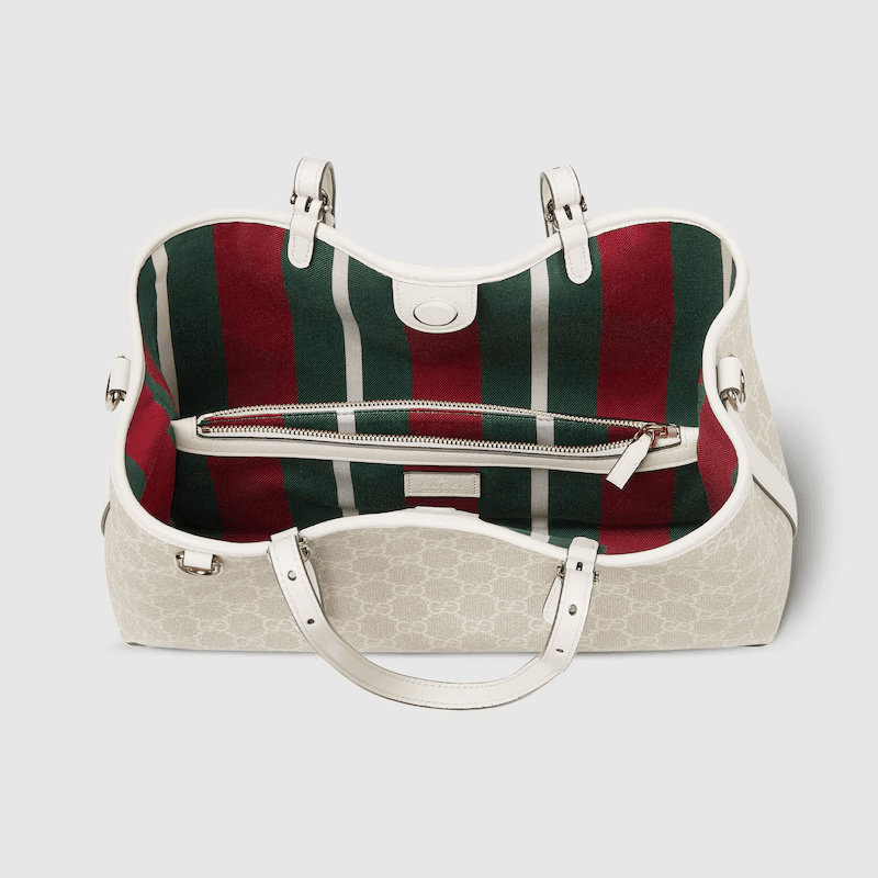 The new GG Emblem collection reinterprets the House’s history of elegance and craftsmanship. This tote bag features numbered notches on the adjustable top handles, inspired by the equestrian world.