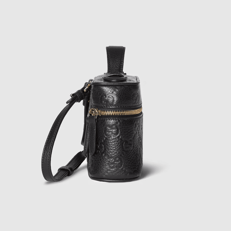 The GG Emblem collection reinterprets signature motifs through creativity and innovative functions, and is envisioned to be cherished for years to come. Introduced in the latest line of small accessories, this small bag is crafted from emblematic GG grainy leather. The versatile design features two card slots on the inside and an adjustable leather shoulder strap.