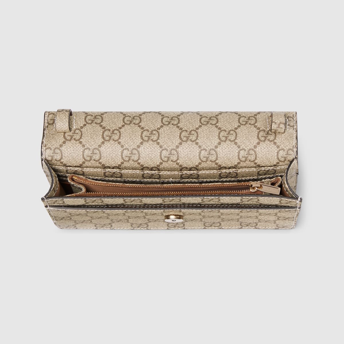 - Beige and dark brown GG Supreme interior