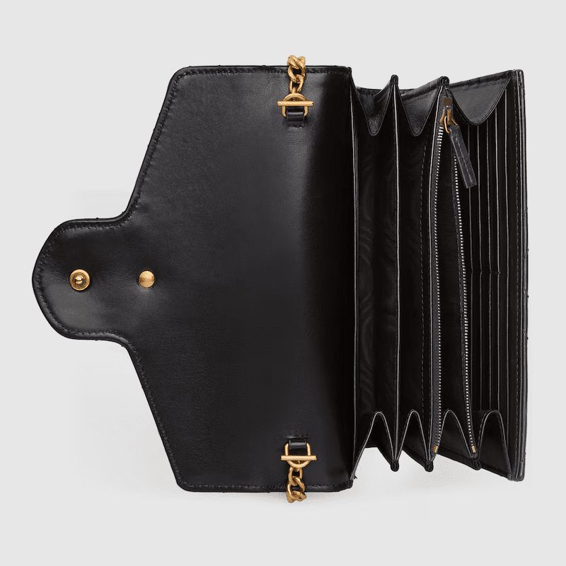 - Black matelassé chevron leather with GG on the back