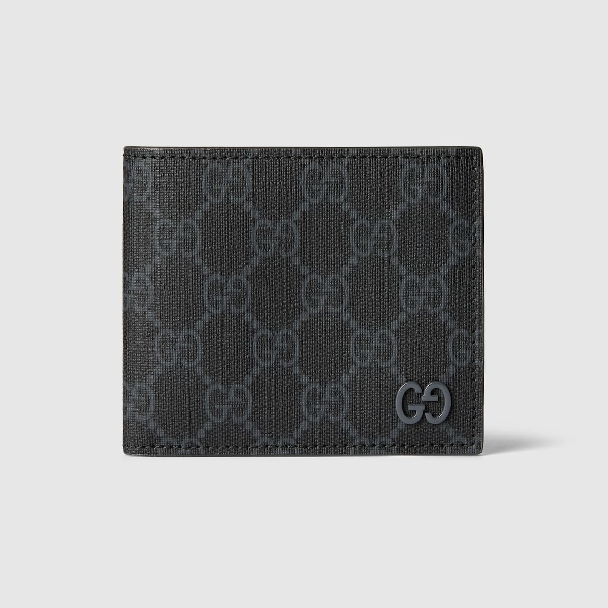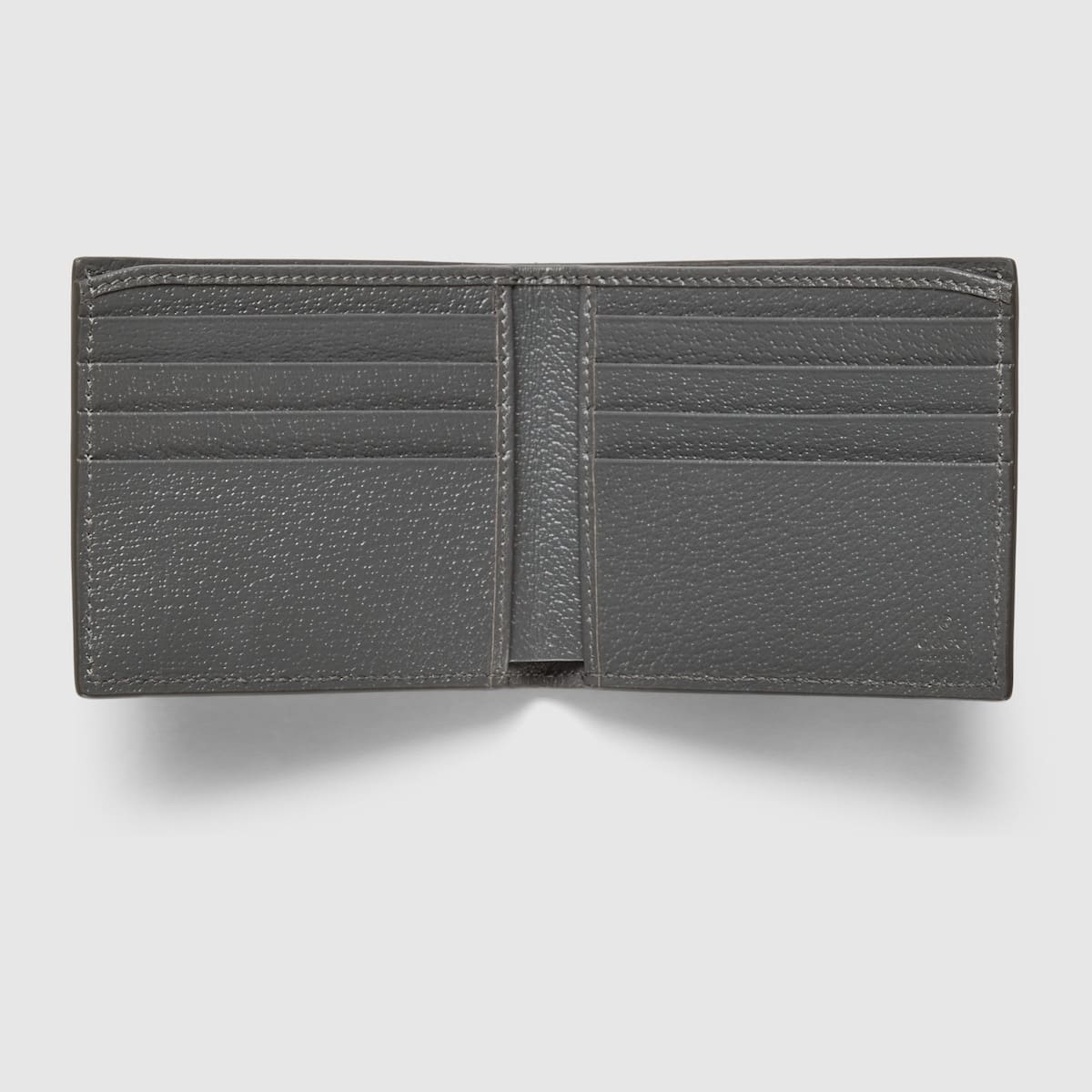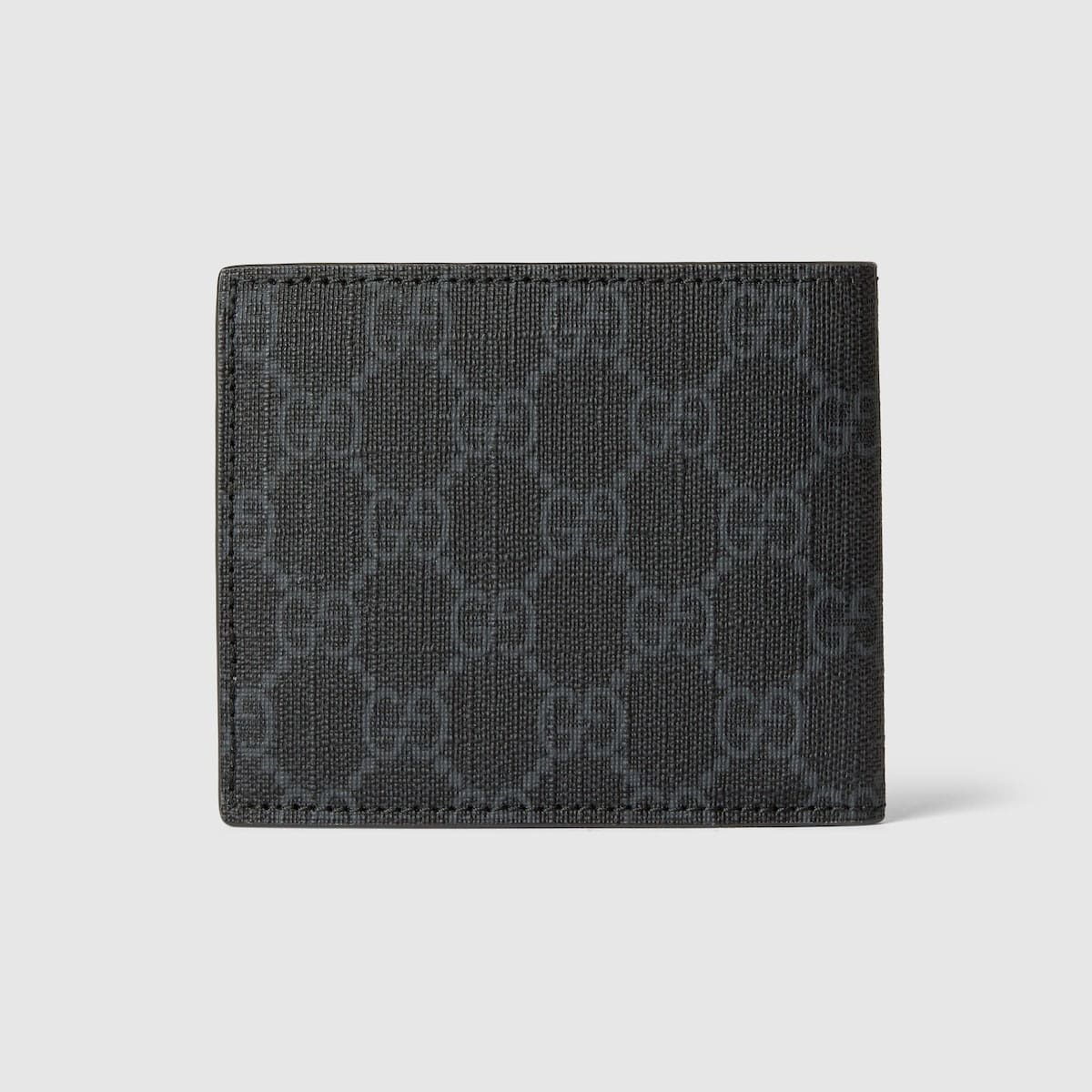 Slim and compact small leather goods from the latest collections highlight new colorful shades sporting the GG logo with a bicolor design. This wallet with eight card slots appears in a black GG Supreme canvas, complete with a smooth grey leather interior.