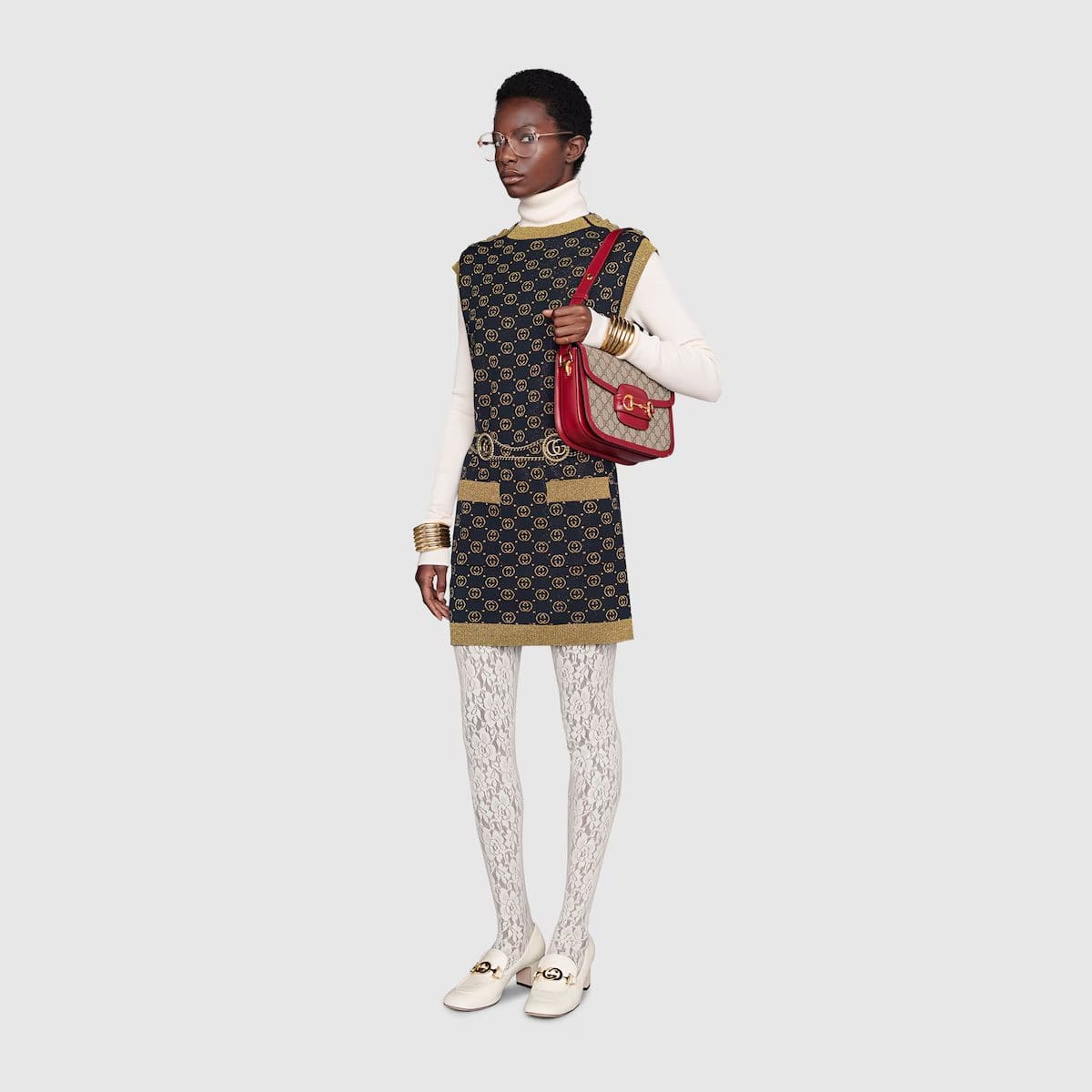 Introduced for Cruise 2020, the Gucci Horsebit 1955 bag is recreated from an archival design. With the same lines and forms first introduced over six decades ago, the accessory unifies the original details with a modern spirit, highlighting the Horsebit. Part of Gucci’s genetic code, the double ring and bar design has been established as one of the most distinctive elements among the House symbols borrowed from the equestrian world. Presented on a small flap shoulder bag, the hardware is paired with the House’s monogram fabric and completed with a special mechanism that adjusts the length of the shoulder strap so it can be carried on one shoulder or cross body.