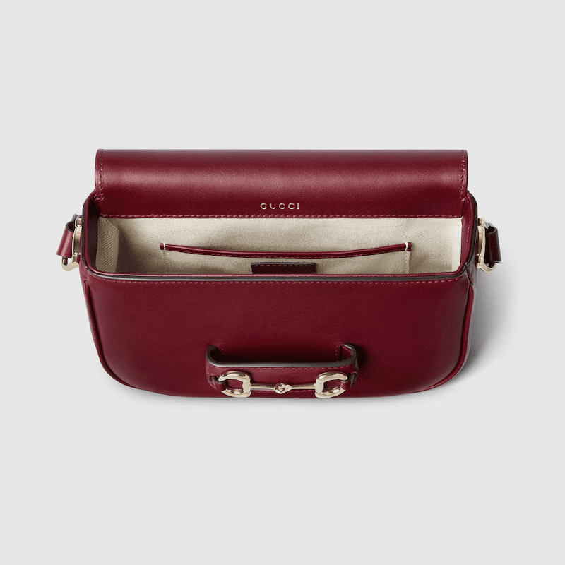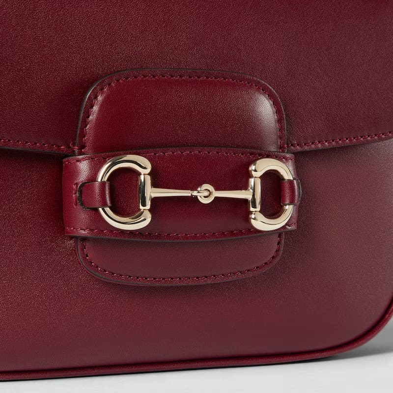 The Gucci Horsebit 1955 Soft continues to highlight its iconic double ring and bar hardware. This mini shoulder bag style is crafted from Gucci Rosso Ancora red soft leather with natural shine.