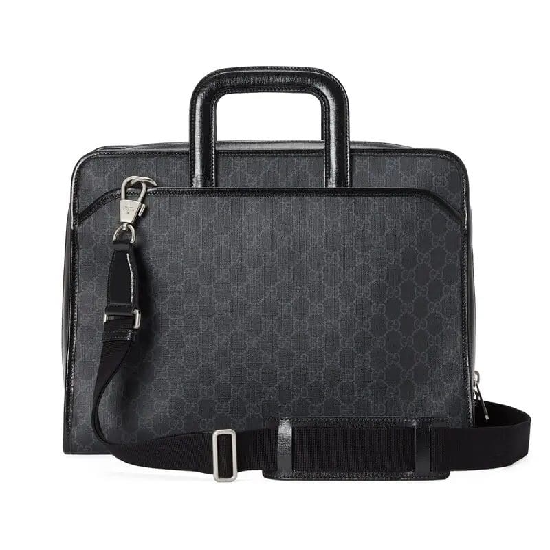 GG Supreme canvas is a timeless classic of the brand. Made from coated microfiber fabric, it is soft and stretchy. This briefcase is presented in a black version of this material. The interlocking Double G logo adds to the charm of the entire design, emphasizing the brand’s charming logo heritage.