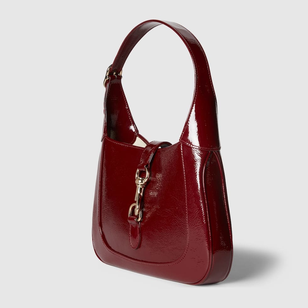 The new Gucci Jackie is crafted from fine leather which highlights the craftsmanship, crescent shape, and sleek silhouette of the House’s iconic shoulder bag. Light gold-toned hook closure, leather trim, and an additional strap featuring the green and red Web gives this Gucci Jackie medium shoulder bag in Gucci Rosso Ancora leather, the signature red hue of the House, further styling options.