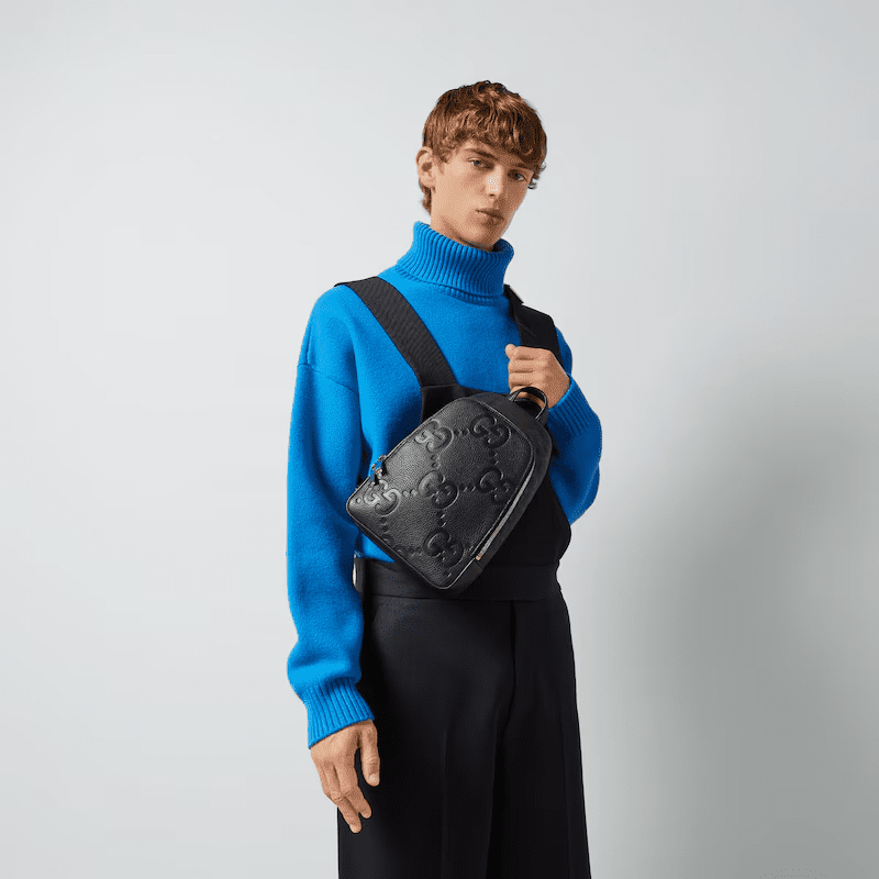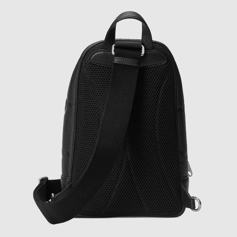 The all-black jumbo GG design continues for Cruise 2024 atop a selection of leather accessories. A reinterpretation of Guccio Gucci’s initials, the motif is an evergreen of the House that appears prominently in maxi size for an eye-catching logo feel. This versatile crossbody bag in the emblematic leather features three card slots inside and a padded mesh back.