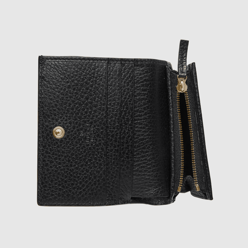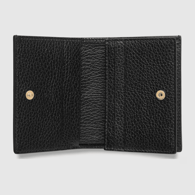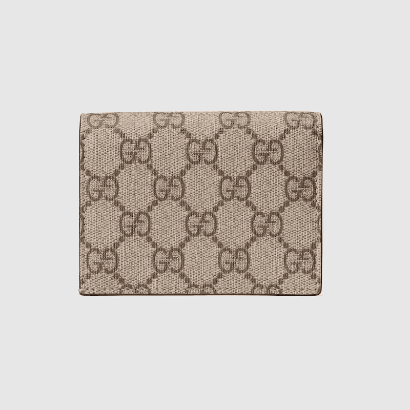 Taken from the ’70s archives, the Double G continues to define the GG Marmont line. Here, this card case wallet is crafted from beige and ebony GG Supreme canvas with black leather details.