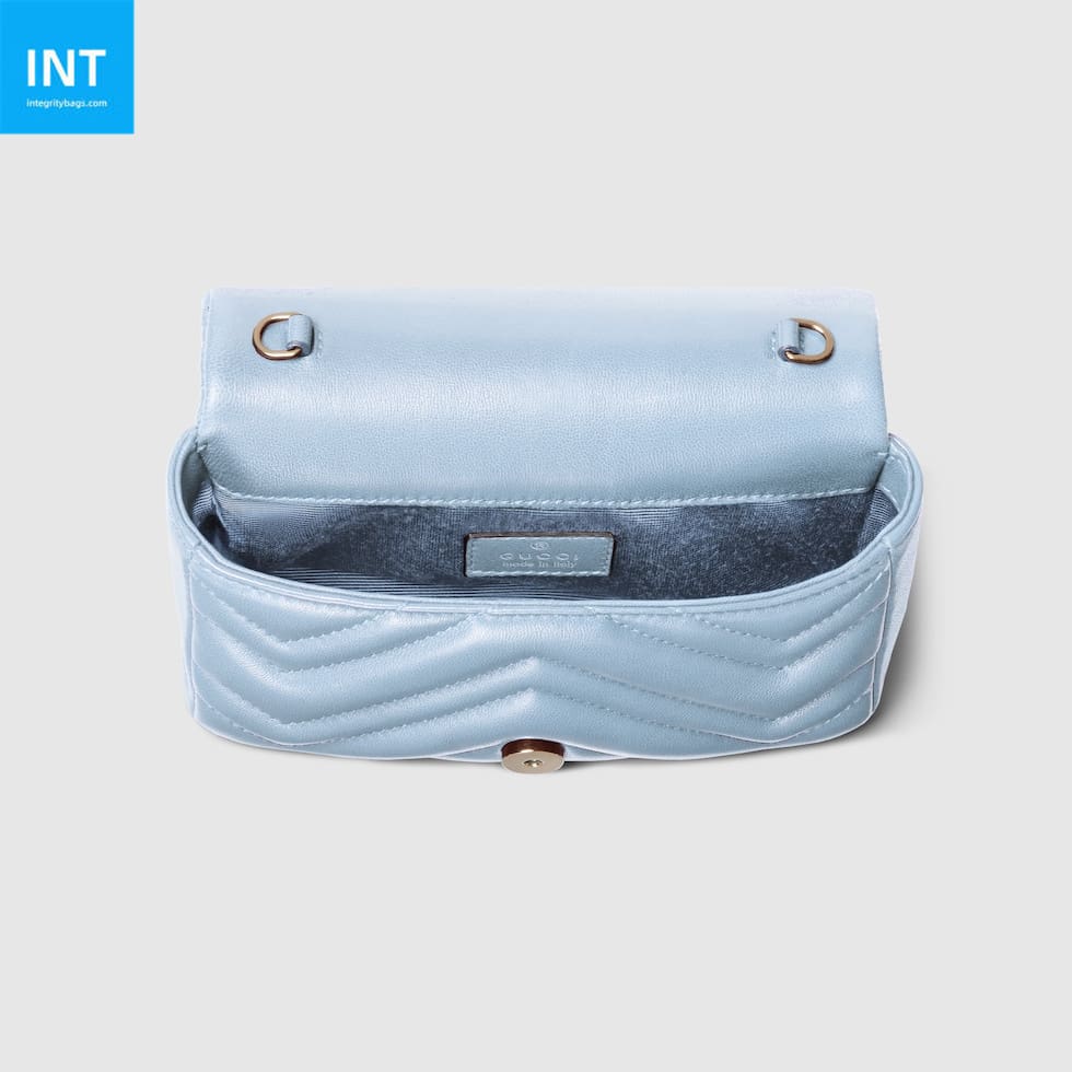 - Light blue matelassé chevron lambskin leather