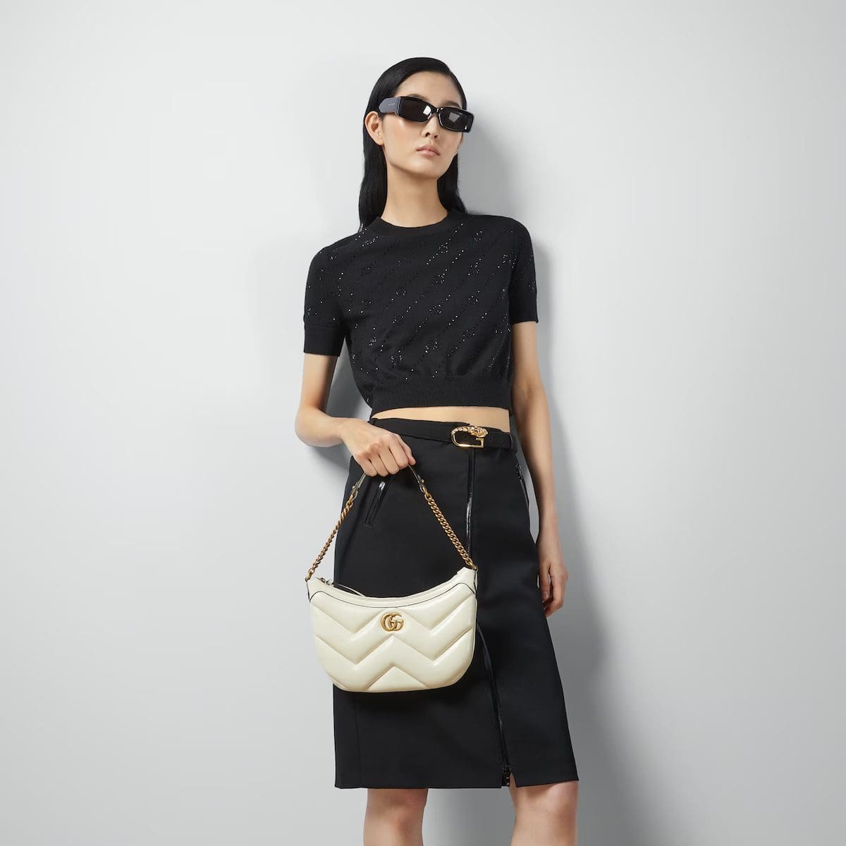 The GG Marmont is synonymous with its matelassé leather and monogram hardware. Crafted from white leather, the small shoulder bag is reimagined with small a Double G.