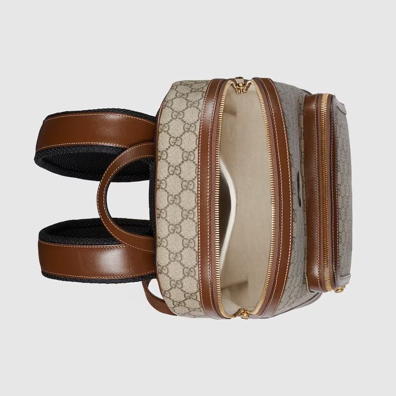 In keeping with the timeless feel that permeates the latest luggage selection, this backpack appears in the classic beige and ebony GG Supreme. The canvas has come to the front of each collection decade after decade to become a hallmark of the House. An Interlocking G leather tag completes the design.
