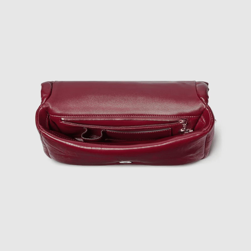 • One zip pocket with GG charm, one open pocket and one lipstick storage compartment