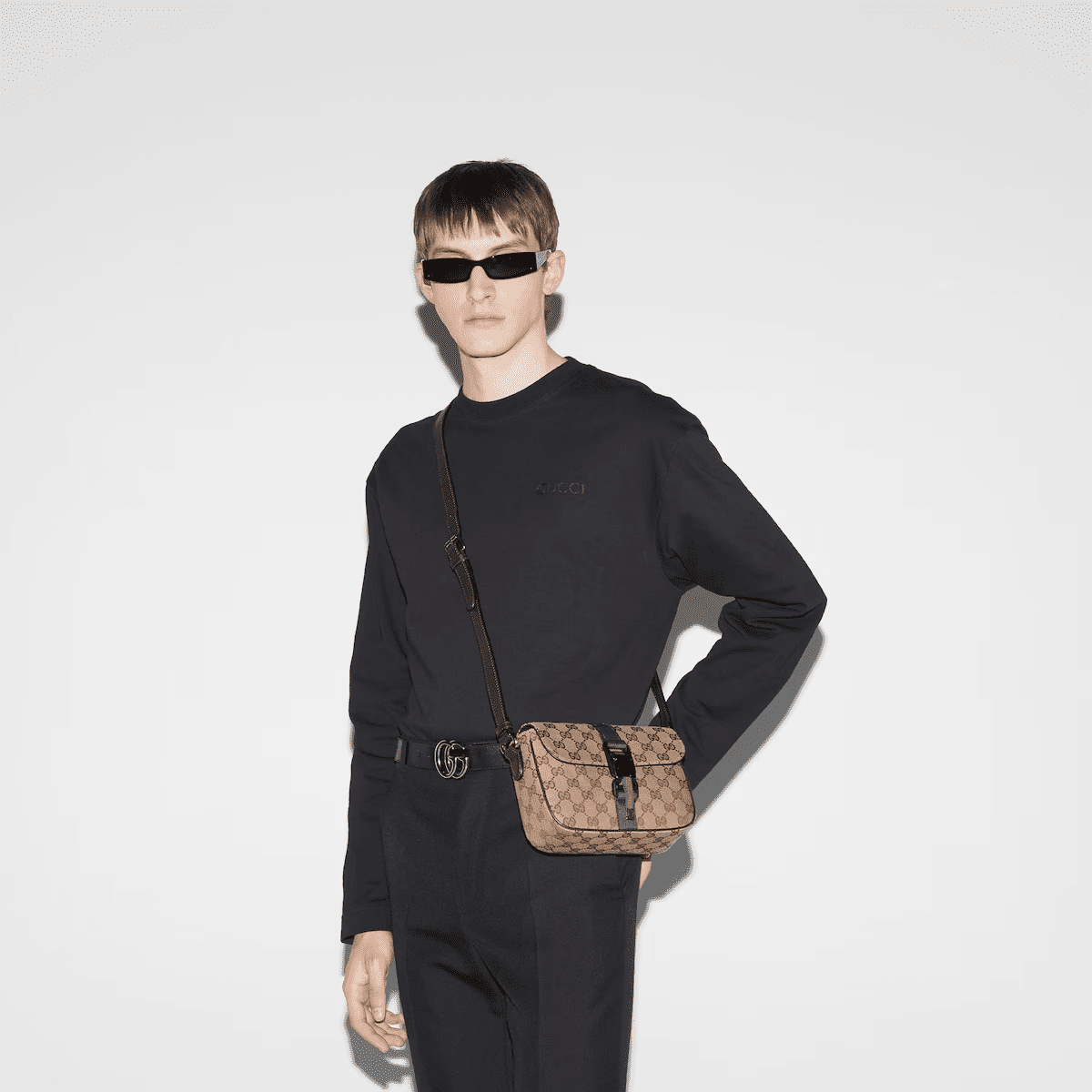 The latest small leather accessories line for men explores new functionalities and colorways. Crafted from the Original GG canvas, this timeless mini crossbody bag conveys a contemporary mood through subtle details, such as the subtle Web detail and new magnetic metal closure.