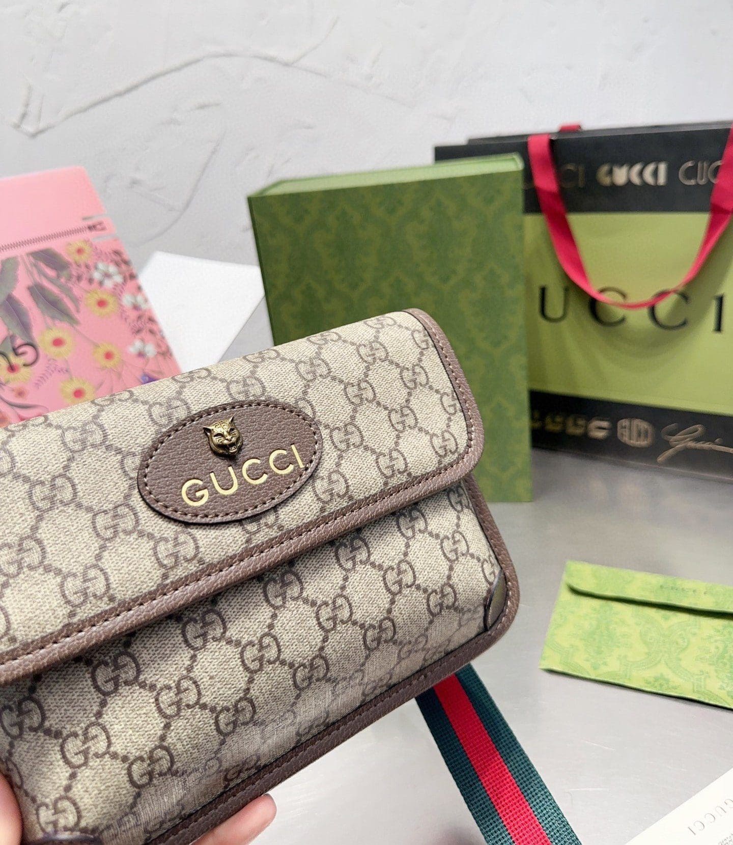 The belt bag in GG Supreme has a retro influenced design. Trimmed with leather, the style is meant to be worn along the waist, securing with a Web strap and buckle closure.