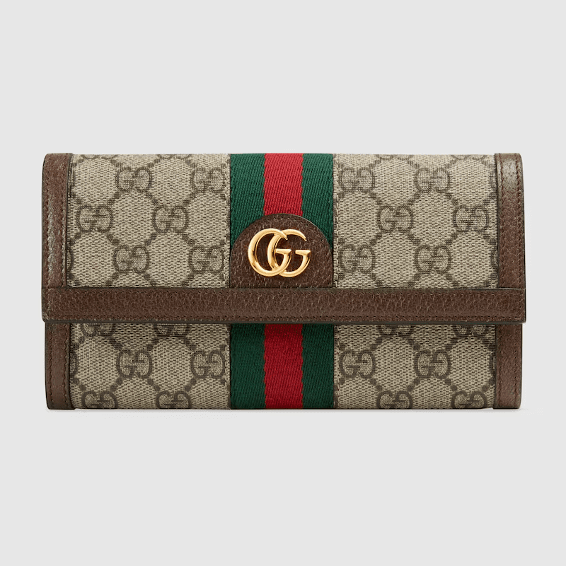 First used in the 1970s, the GG logo was an evolution of the original Gucci rhombi design from the 1930s, and from then it’s been an established symbol of Gucci’s heritage. The continental wallet combines the signature motif with the Web stripe—a timeless pairing that pays homage to Gucci’s roots.