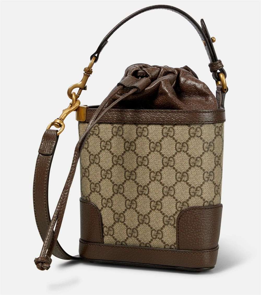 A historic interpretation of founder Guccio Gucci’s initials, GG Supreme canvas is a key fabric at the house of Gucci. This rendition of the Ophidia bag is made to a bucket silhouette with and features the signature gold-tone hardware and web stripe detailing.· Closure: drawstring top