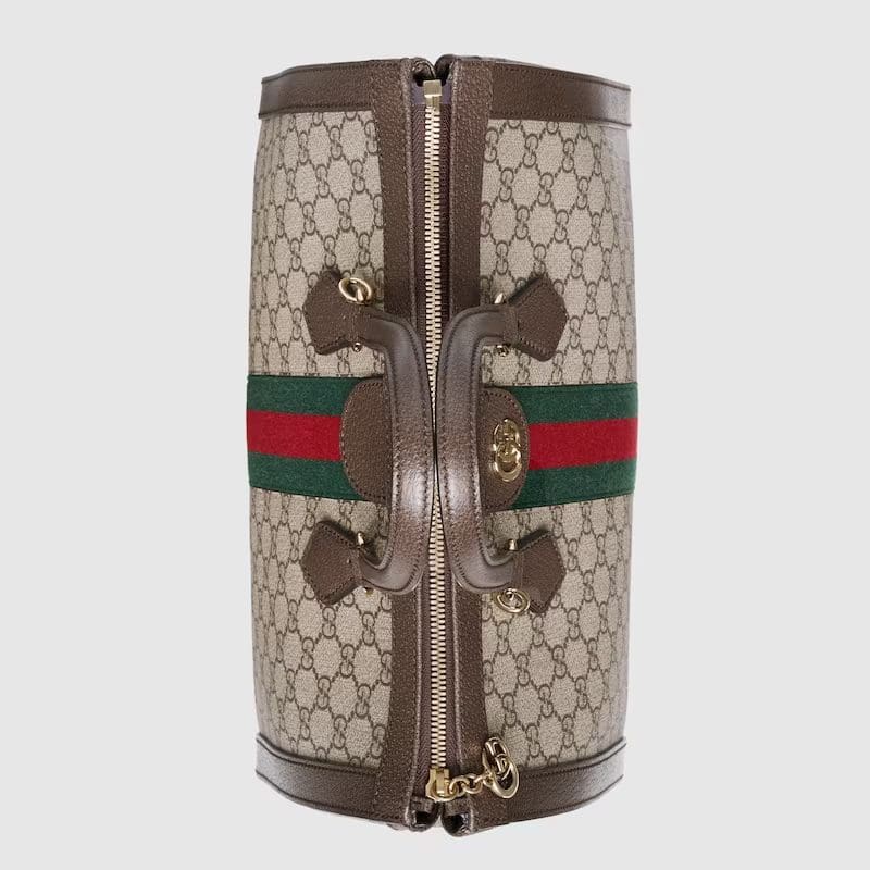 Imbued with retro-inspired references, the world of Ophidia evolves with the introduction of a medium top handle bag defined by a squared shape that recalls vintage designs. Crafted in GG Supreme canvas, the accessory features some of the most distinctive House codes, like the green and red Web stripe—an homage to the equestrian world—and the Double G from the ’70s archives, here reworked with a sophisticated take. The bag is completed with a detachable shoulder strap which allows it to be carried in multiple ways.