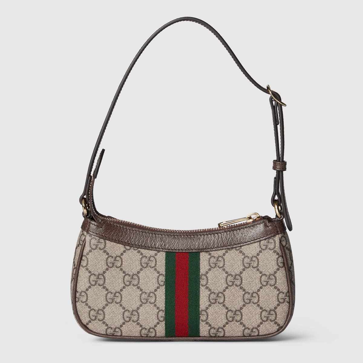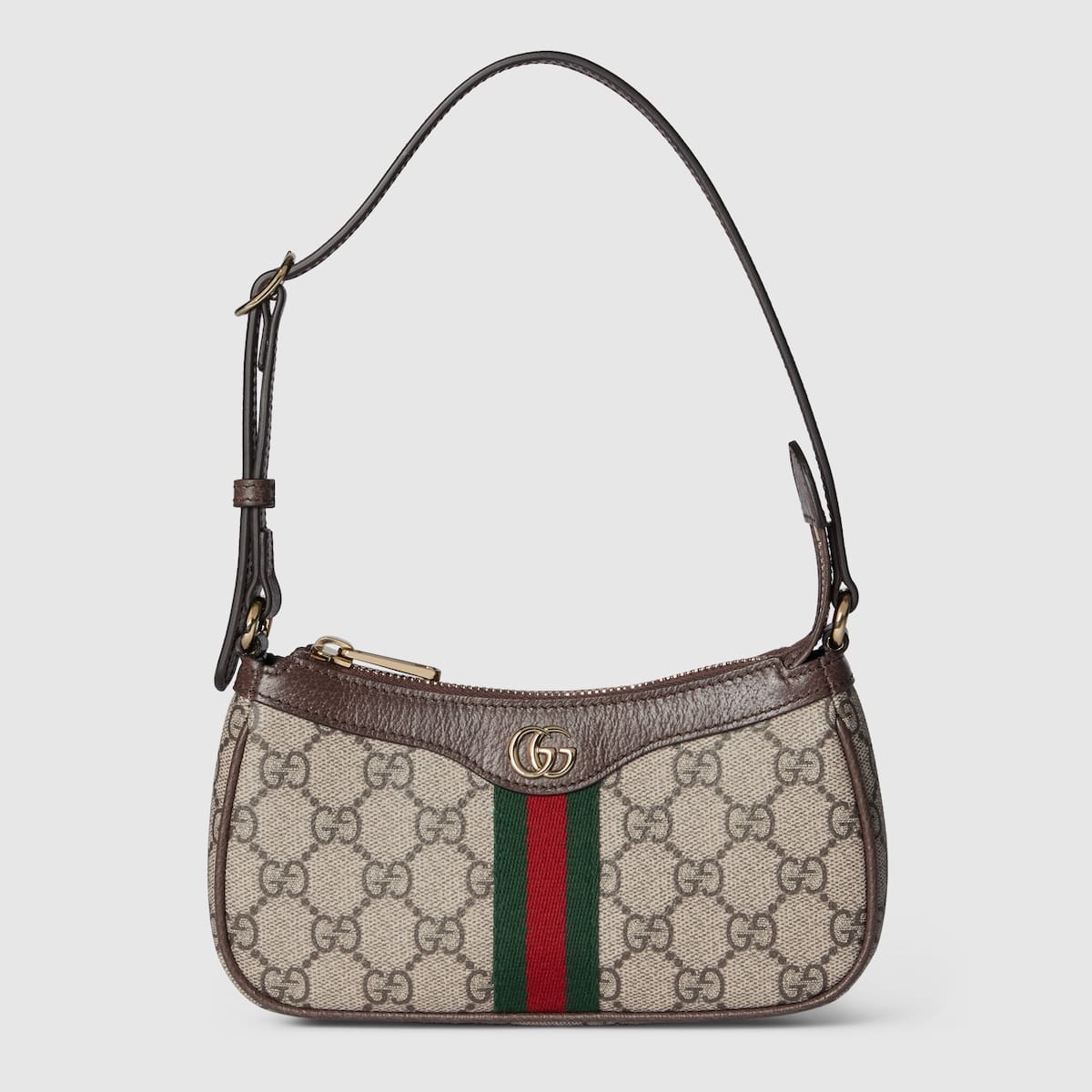 The Ophidia collection evokes the House’s heritage with the signature Web stripe and Double G emblem in light gold-toned finish. The styles are crafted from soft GG Monogram coated fabric, featuring green cotton lining inside.