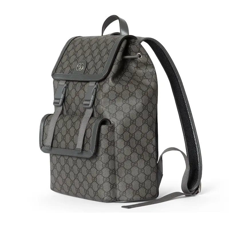The Ophidia men’s bags, including mini crossbody bags, briefcases and totes, are updated with practical details. The Double G motif, a classic design element of the brand, is reinterpreted in GG Supreme canvas and classic colors, adding a unique style to each bag. The motif is charmingly presented on this small backpack in gray and black.