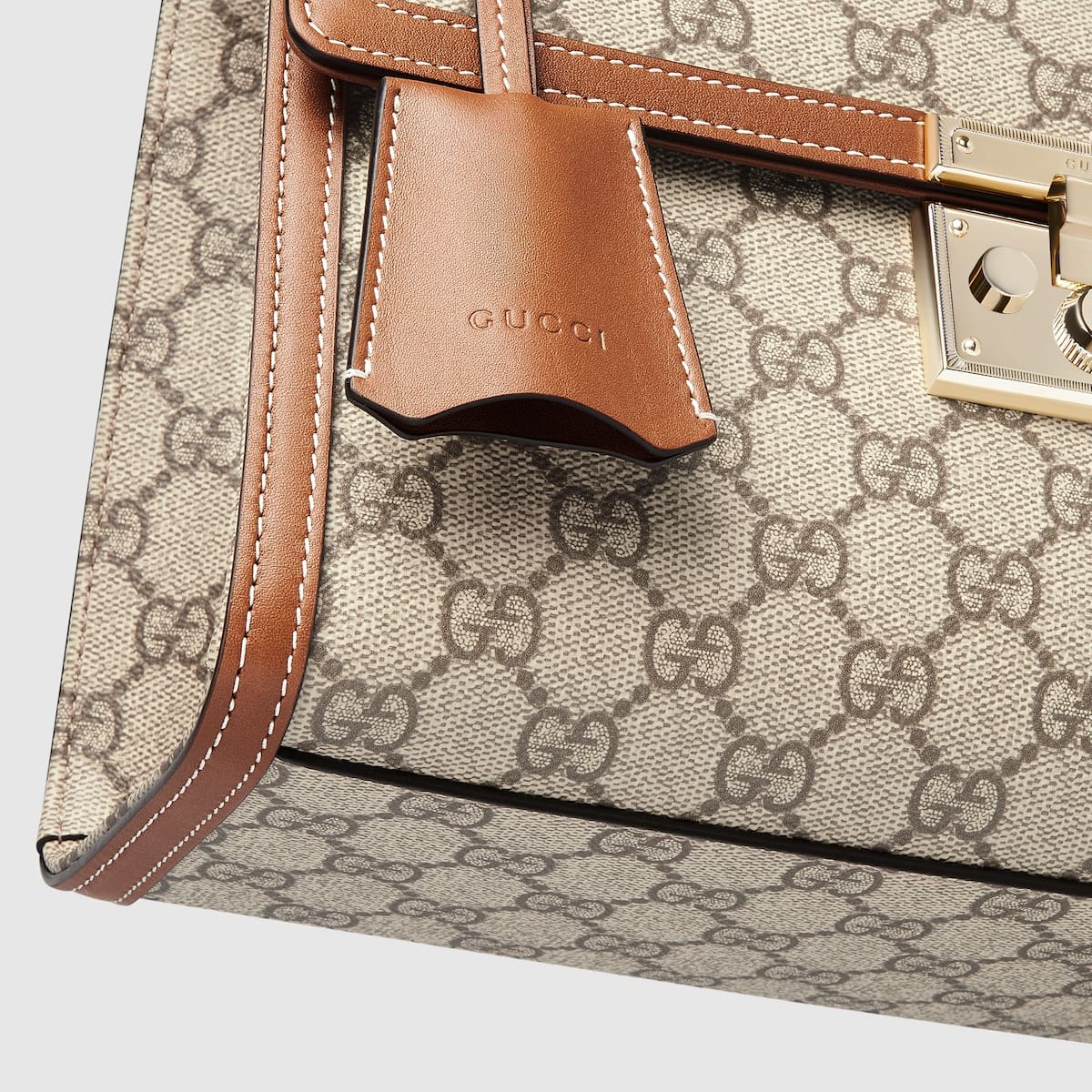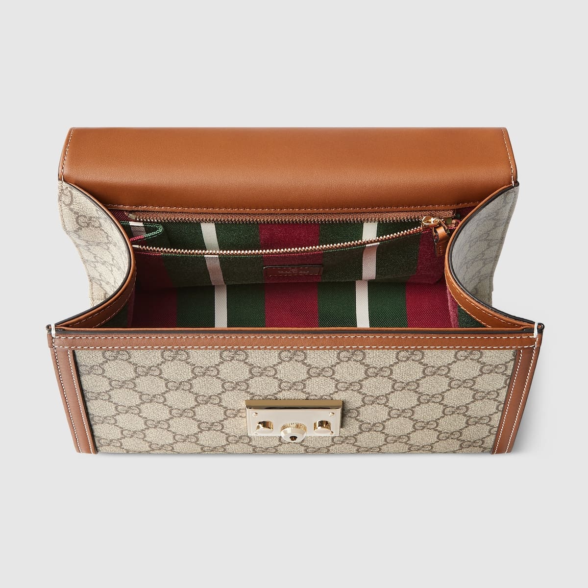 In the Pre-Fall 2025 collection, the Padlock introduces contemporary silhouettes that offer many wearabilities. This style can be worn with its top handle or crossbody, featuring a Web lining which recalls the House’s signature motif.