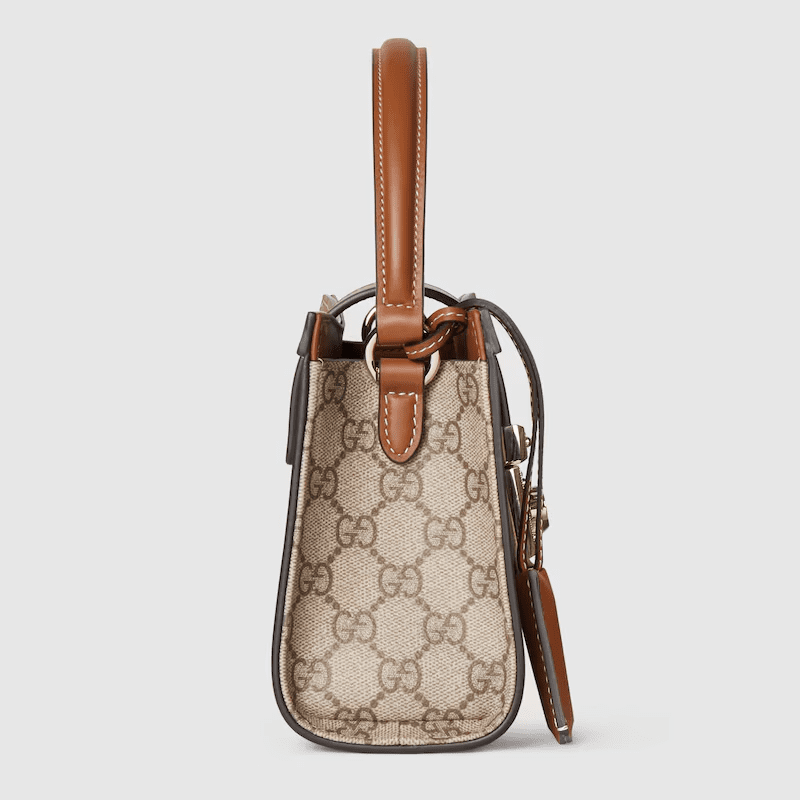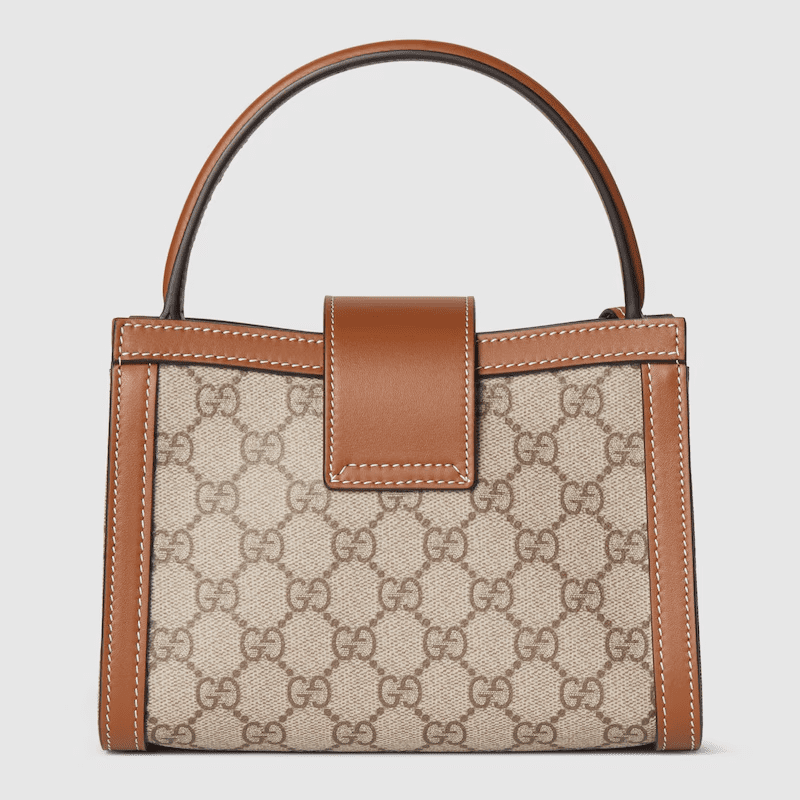In the Pre-Fall 2025 collection, the Padlock introduces contemporary silhouettes that offer many wearabilities. The top handle bag reveals a Web lining which recalls the House’s signature motif.