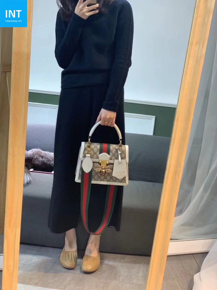 Gucci Queen Margaret Top Handle Bag GG Coated Canvas with Leather Small