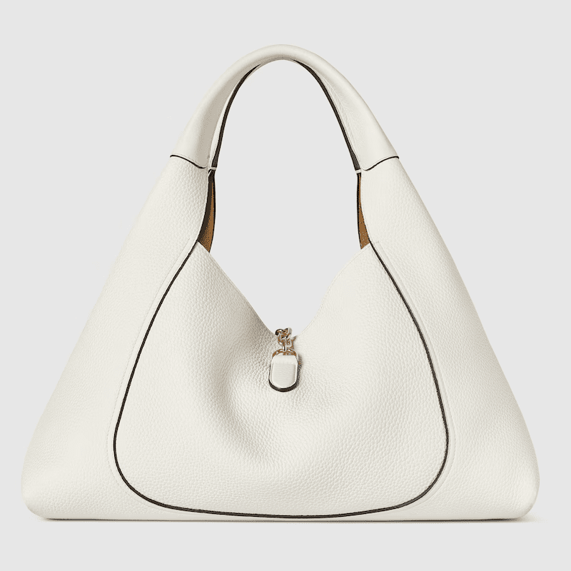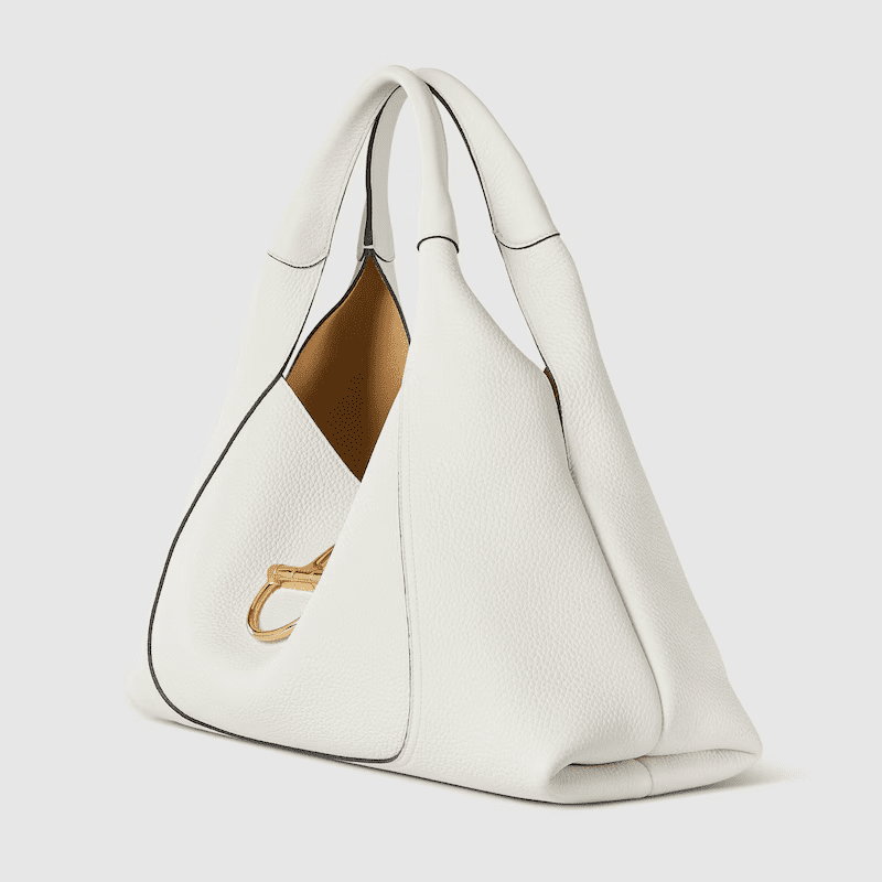 The new Gucci Softbit shoulder bag reimagines the House’s signature hardware as an oversized half Horsebit. It is both aesthetic and functional as the magnetic closure of the relaxed silhouette, crafted from supple, grainy leather with a rich texture.