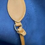 - Brown leather trim with contrast stitching