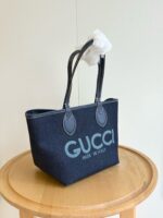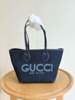 Introducing a reversible style with two distinct looks in one piece, this Gucci Totissima small tote bag is crafted with denim on one side, and GG Supreme on the other. The name Totissima emphasizes an enduring style and functionality.