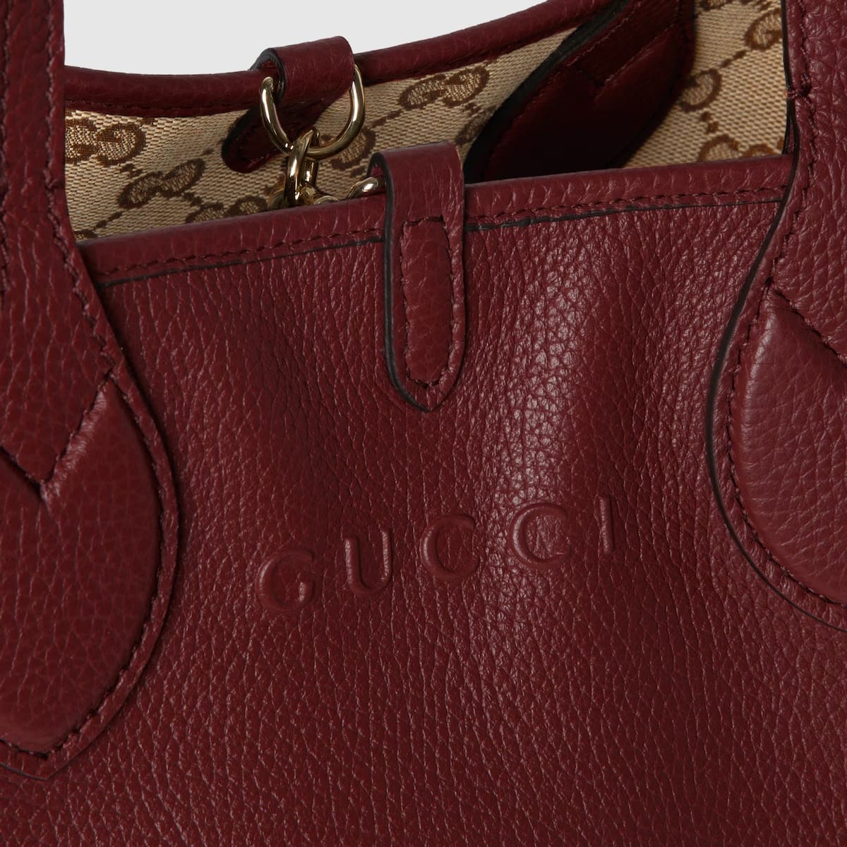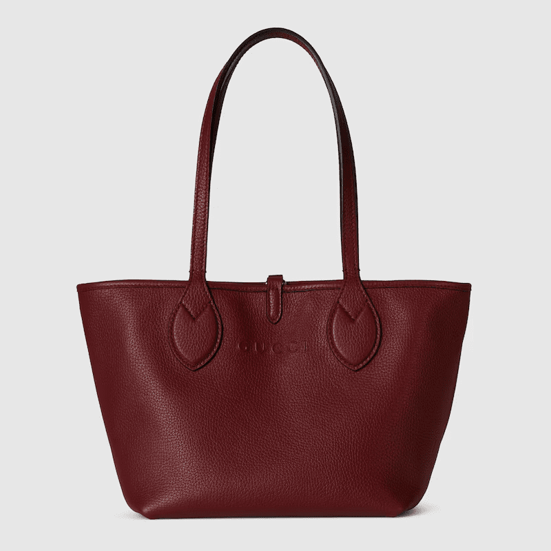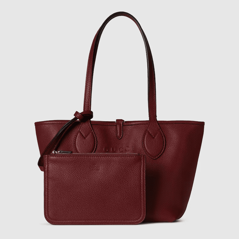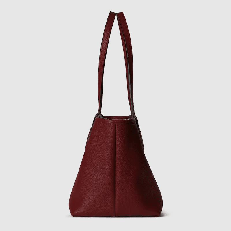 Introducing a reversible style with two distinct looks in one piece, this Gucci Totissima is crafted with grainy leather on one side, and GG canvas on the other. The name Totissima emphasizes an enduring style and functionality.