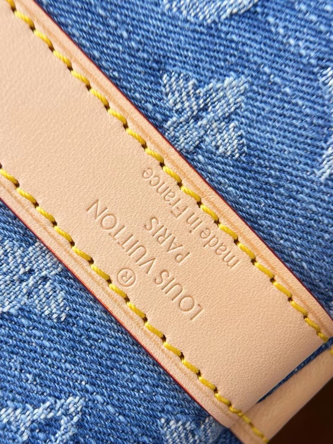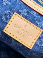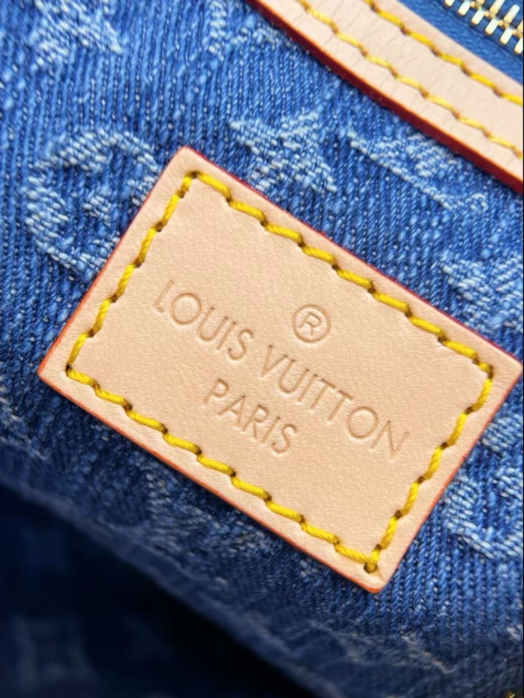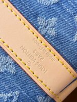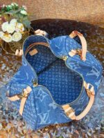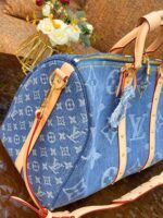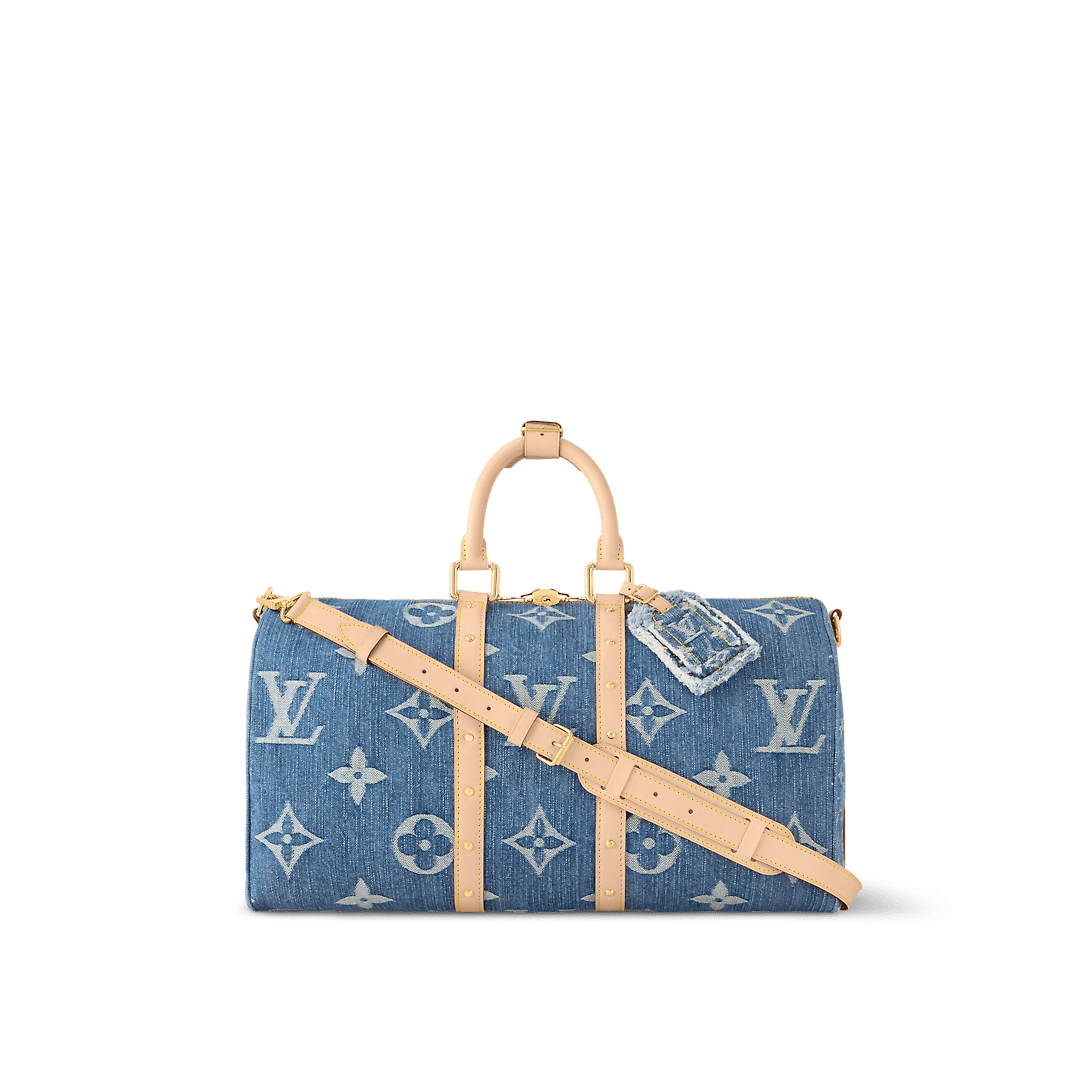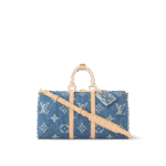 The classic Keepall Bandoulière gets a sporty-chic new look with the Monogram Denim theme. The House’s famous Monogram pattern is printed on certified organic canvas the color of blue jeans, creating an eye-catching contrast with the natural cowhide trim. Complete with a padlock and a removable strap, this spacious bag is ideal as a carry-on or for short trips.