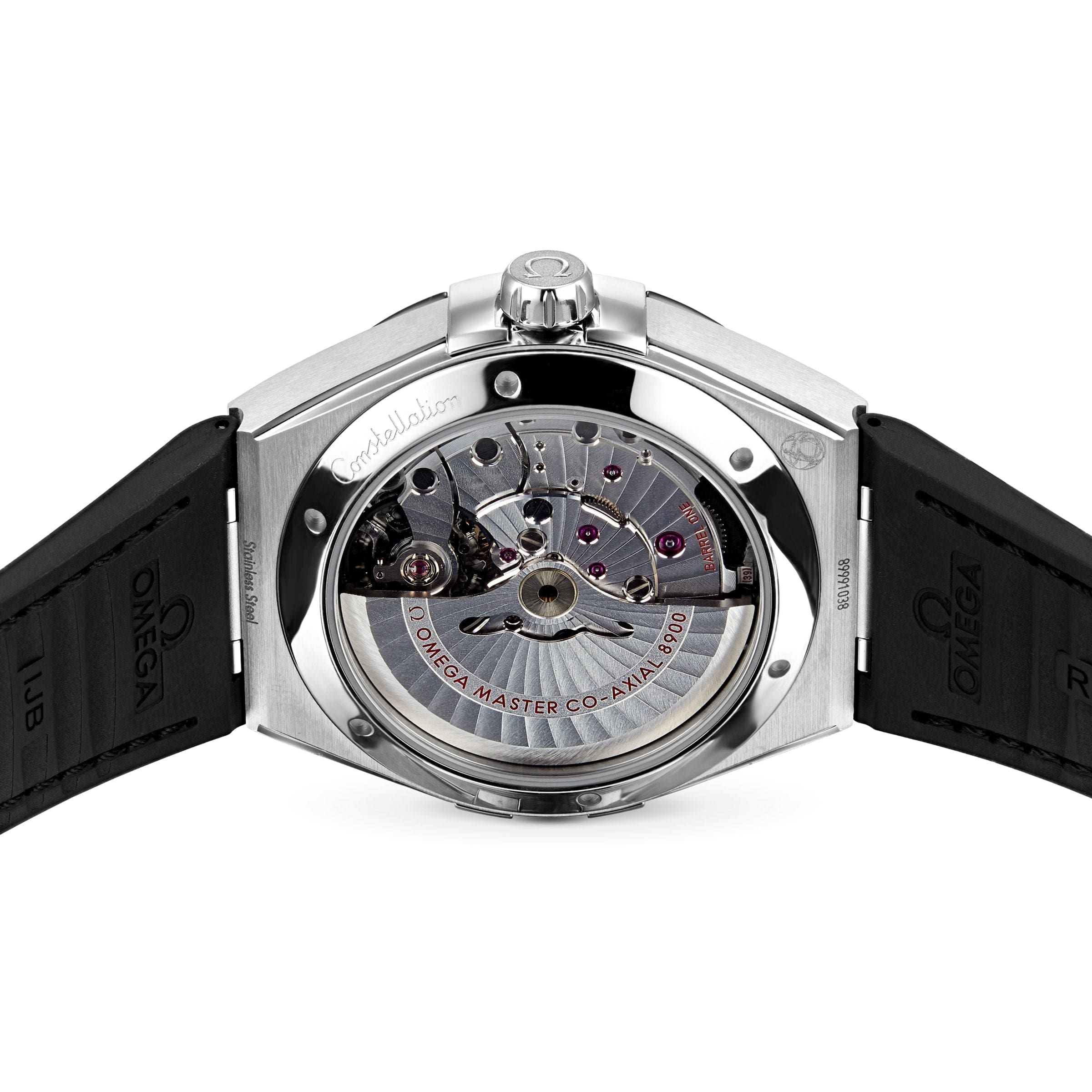 A tribute to Omega??s accomplishments in the 20th century Constellation heritage with the 8900 calibre movement 41mm stainless steel case paired with a black, rubber-lined leather strap Silk-embossed rhodium-grey dial framed by a polished, black ceramic Master chronometer certified by METAS A CELEBRATION OF PRECISION Launched in 1952, the iconic Constellation collection was created to pay tribute to Omega??s countless precision accomplishments during the early 20th century. Powered by the brand??s most advanced movements, the striking models in this collection are characterised by dramatic, enduring design. Each model features four claws on the side of the case, half-moon facets, Roman numerals, and a trapezoidal date window beneath a single star. ENDURING DESIGN This 41mm watch features a stainless case with a black, rubber-lined leather strap. The striking, silk-embossed rhodium-grey dial features blackened hands and hour markers, complimenting the polished black bezel. The 8900 calibre movement provides flawless precision and can be viewed through the transparent caseback.