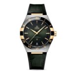 A tribute to Omega??s accomplishments in the 20th century Constellation heritage with the 8900 calibre movement 41mm 18K yellow gold and stainless steel case paired with a green, rubber-lined leather strap Sun-brushed dial framed by a polished black ceramic bezel Master chronometer certified by METAS PAYING TRIBUTE TO OMEGA??S 20TH CENTURY ACHIEVEMENTS Launched in 1952, the iconic Constellation collection was created to pay tribute to Omega??s countless precision accomplishments during the early 20th century. Powered by the brand??s most advanced movements, the striking models in this collection are characterised by dramatic, enduring design. Each model features four claws on the side of the case, half-moon facets, Roman numerals, and a trapezoidal date window beneath a single star. EFFORTLESS PRECISION This 41mm chronograph features an 18K yellow gold and stainless steel case, paired with a deep green, rubber-lined leather strap. Transitioning through rich shades of green, the sun-brushed dial is framed by a polished, black ceramic bezel with Ceragold? numerals. Visible through the transparent caseback, the 8900 calibre movement provides effortless precision and unrivalled performance.