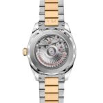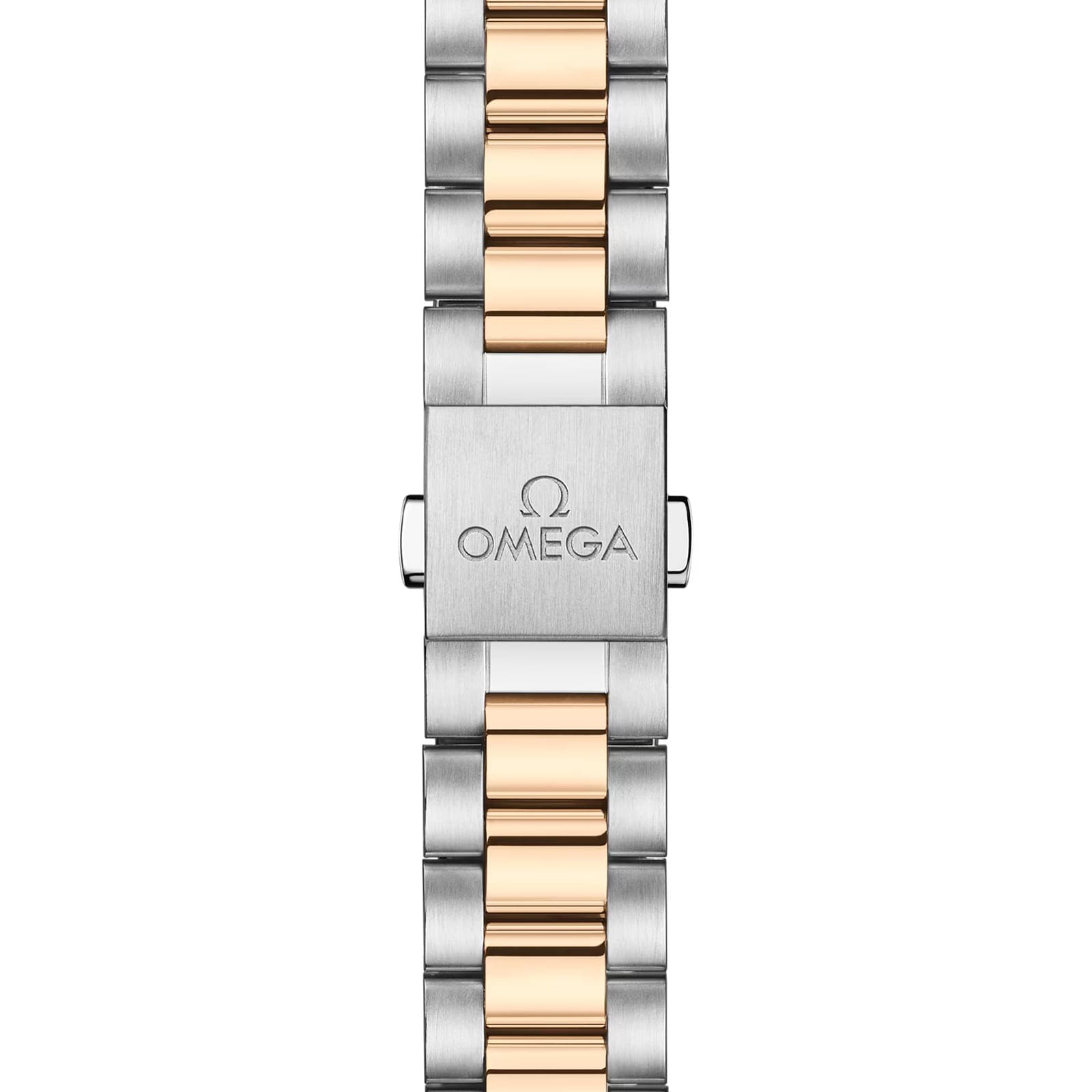 The Seamaster Aqua Terra is a superb tribute to OMEGA??s rich maritime heritage. This 38 mm model has a symmetrical stainless-steel and 18K Moonshine? Gold case with a screw-in caseback featuring a wave-edged design. Its sun-brushed tinted lacquer burgundy dial, with black gradient effect, has an 18K Moonshine? Gold OMEGA logo, and date window at 6 o’clock. The hands and hour markers, also in 18K Moonshine? Gold, are filled with white Super-LumiNova which emits a blue glow. The watch is presented on an integrated bracelet with polished central links and brushed external links and powered by OMEGA??s Co-Axial Master Chronometer calibre 8800, certified at the industry??s highest standard by the Swiss Federal Institute of Metrology (METAS).
